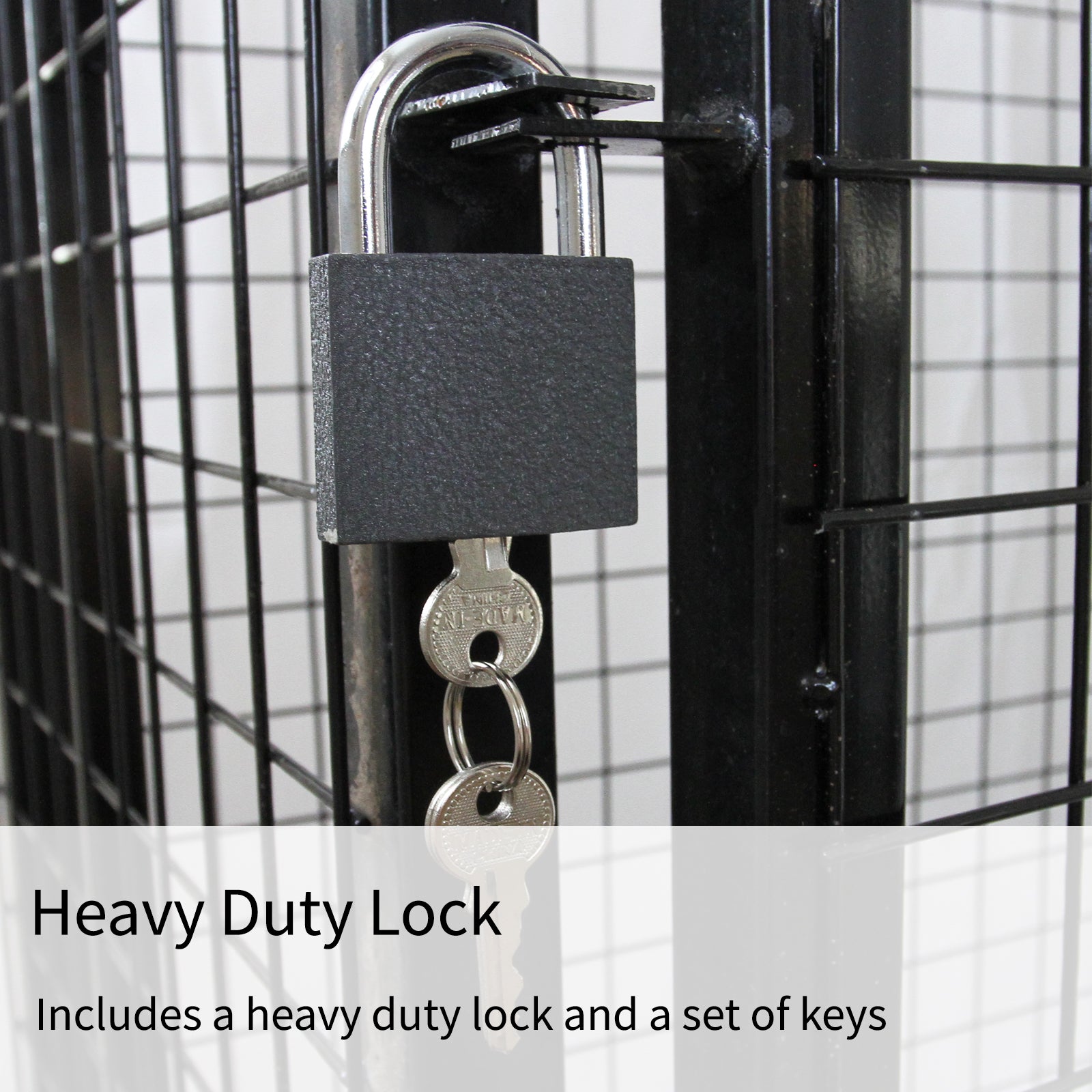 Tämä kestävä galvanoitu teräsverkkohäkki sopii täydellisesti kaasupullojen turvalliseen ja huolelliseen säilytykseen. Saranaovet tekevät siitä helposti käytettävän, ja tukeva lukko takaa maksimaalisen turvallisuuden. Siinä on jopa ilmainen "Varoitus"-kyltti!