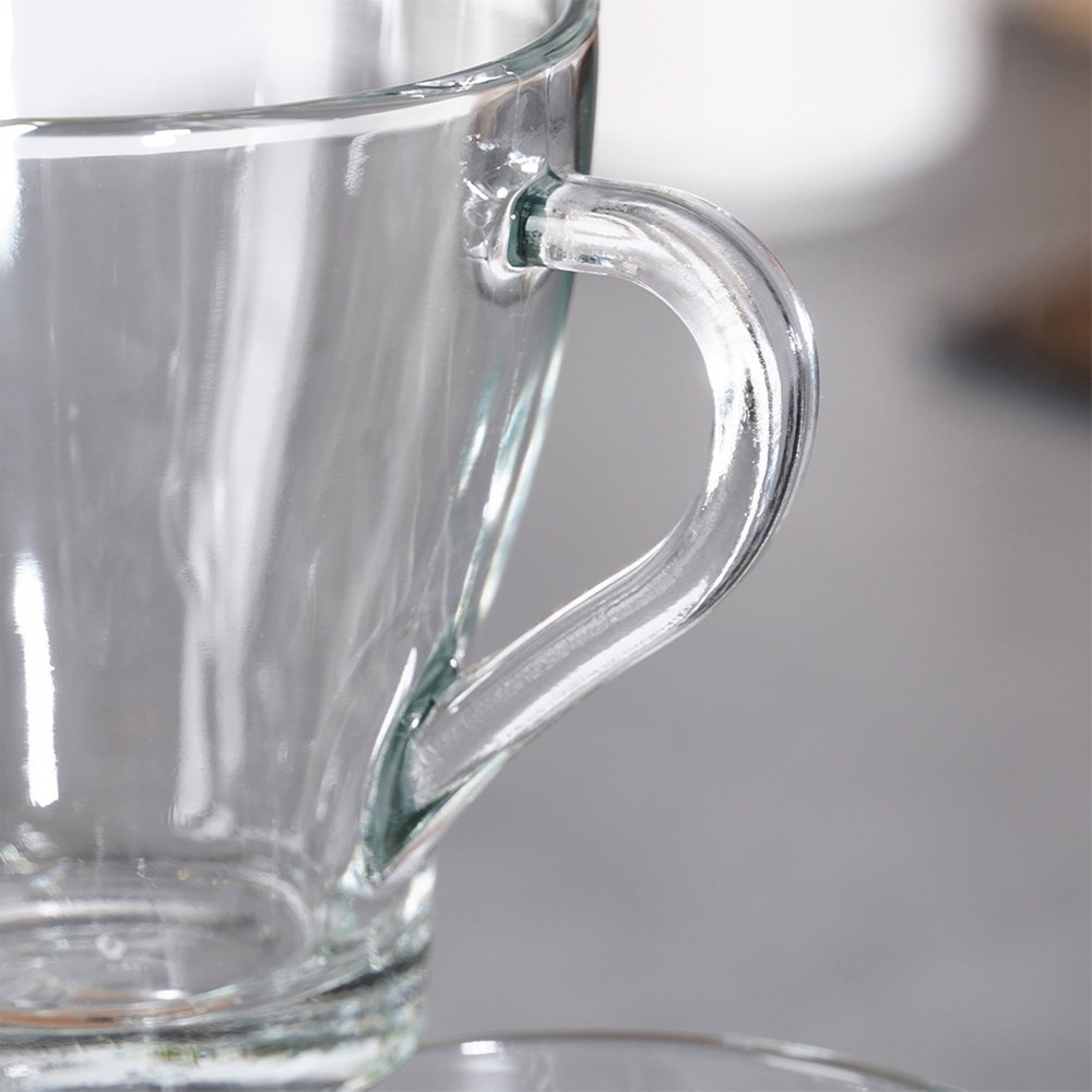 Kuusi lasia kahvoilla, tilavuus 250 ml - Kuuden juomalasin setti, joiden kokonaistilavuus on 250 ml. Laseissa on mukava kahva, joka varmistaa mukavan käytön. Kunkin lasin korkeus on 9,5 cm ja halkaisija 8,5 cm, lasin pituus kahvan kanssa on 11 cm.