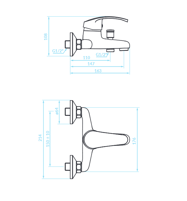 KAKADU seinään kiinnitettävä kylpyamme- ja suihkuhana, valkoinen, BKK610D