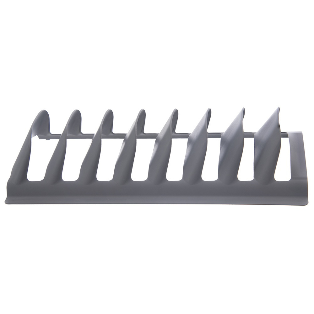 Kätevä kaappijärjestelijä - Täydellinen kansien ja litteiden lautasten säilyttämiseen pystyasennossa. Syviä lautasia voidaan säilyttää järjestäjässä niiden muodosta riippuen. Sitä voidaan käyttää järjestäjänä syvässä laatikossa tai kaapissa.