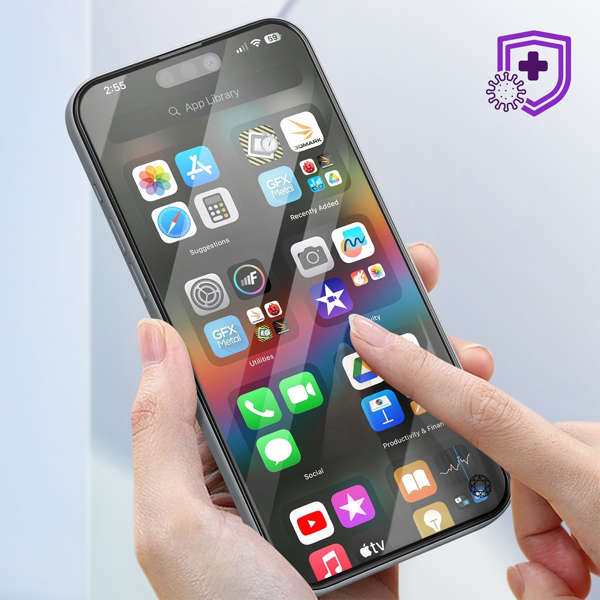 Tämä iskunkestävä karkaistua lasia oleva näytönsuoja on suunniteltu suojaamaan iPhone 15 Plus -puhelimen näyttöä naarmuilta ja kolhuilta. Siinä on 9H+-teknologia, joka on erittäin kestävä timantin jälkeen. Lasi tarjoaa miellyttävän tuntuman ja täydellisen läpinäkyvyyden, joka takaa tasaisen alkuperäisen kosketuksen ja värilaadun.