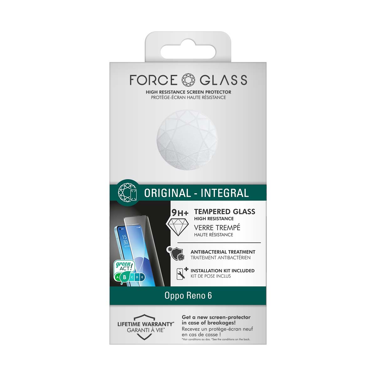 Alkuperäinen Force Glass näytönsuoja Oppo Reno 6 ultra-kestävä 9H + karkaistu lasi. Antibakteerinen käsittely, juokseva pinta, optimoitu paksuus 0,25-0,33 mm. Maksimaalinen läpinäkyvyys ja tarkka leikkaus kameraa varten. Runko yhteensopiva, asennussarja mukana, ekologisesti suunniteltu.
