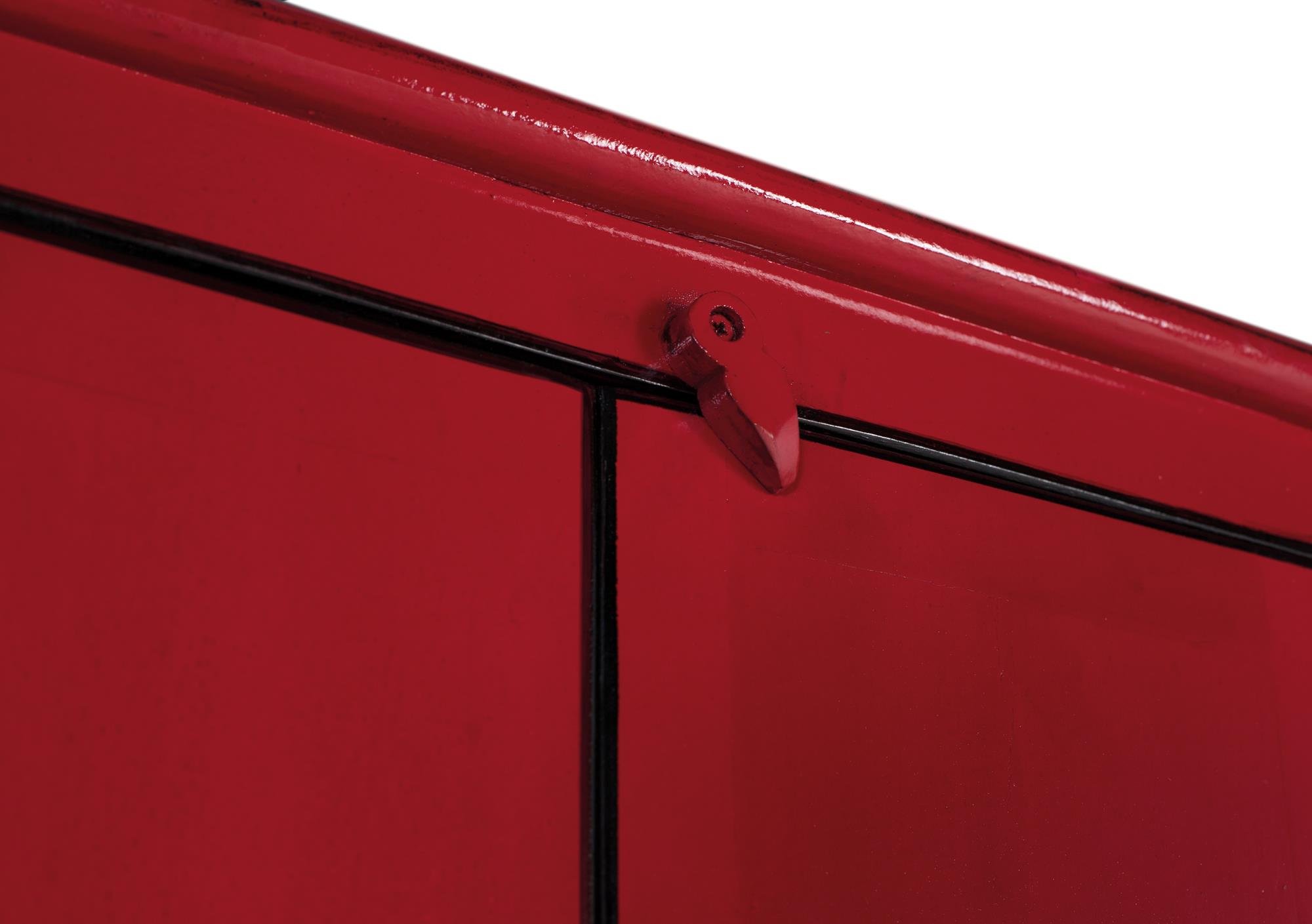 Kaksiovinen vaatekaappi mangopuusta. · Korkeus: 180 cm · Pituus: 60 cm · Leveys: 35 cm · Materiaali: Mangopuu · Väri: Punainen · Paino: 36 kg · Laatikon mitat: 180 x 60 x 35 cm · Koska tämä on luonnonpuusta käsintehty huonekalu, siinä saattaa säilyä alkuperäiset oksankohdat ja syykuviot, ja siksi siinä voi olla pieniä värivaihteluita.