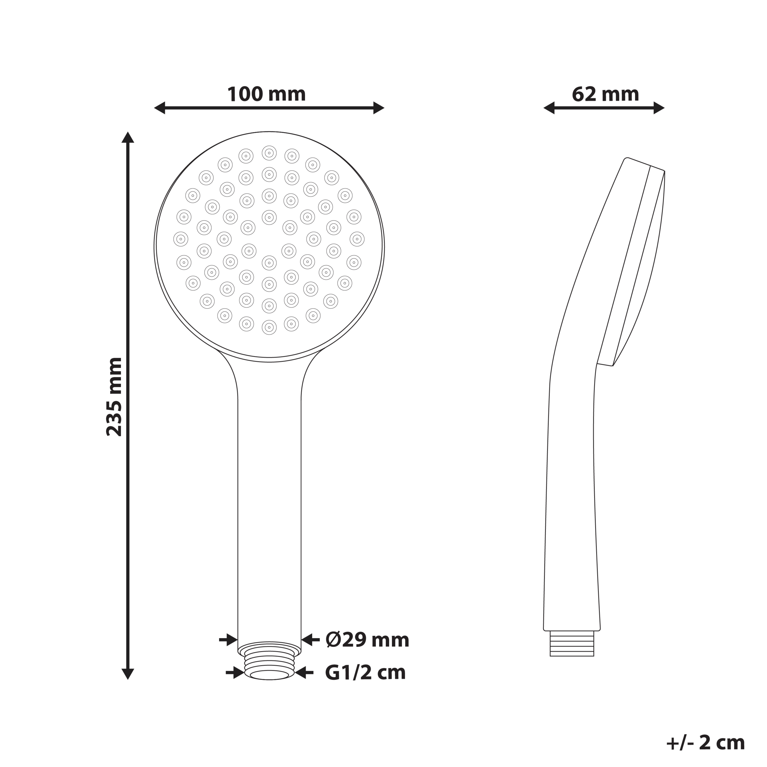 Ominaisuudet: Käytännöllinen käsisuihku, Yhteensopiva standardin G1/2-liitäntätyyppisen letkun kanssa, Kumisuuttimet helpottavat kalkinpoistoa, Ajaton muotoilu, Trendikäs korkeakiiltoinen viimeistely, Kevyt mutta kestävä materiaali