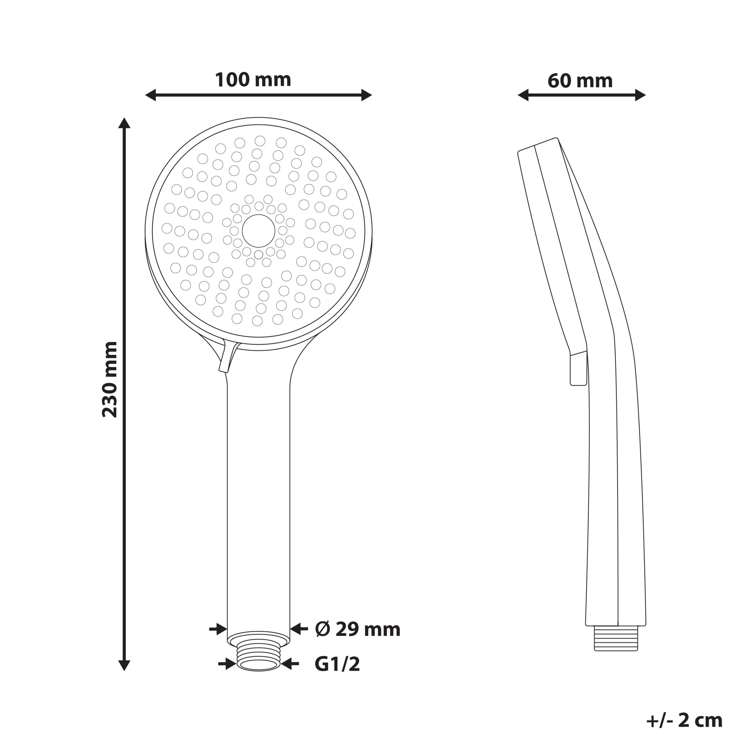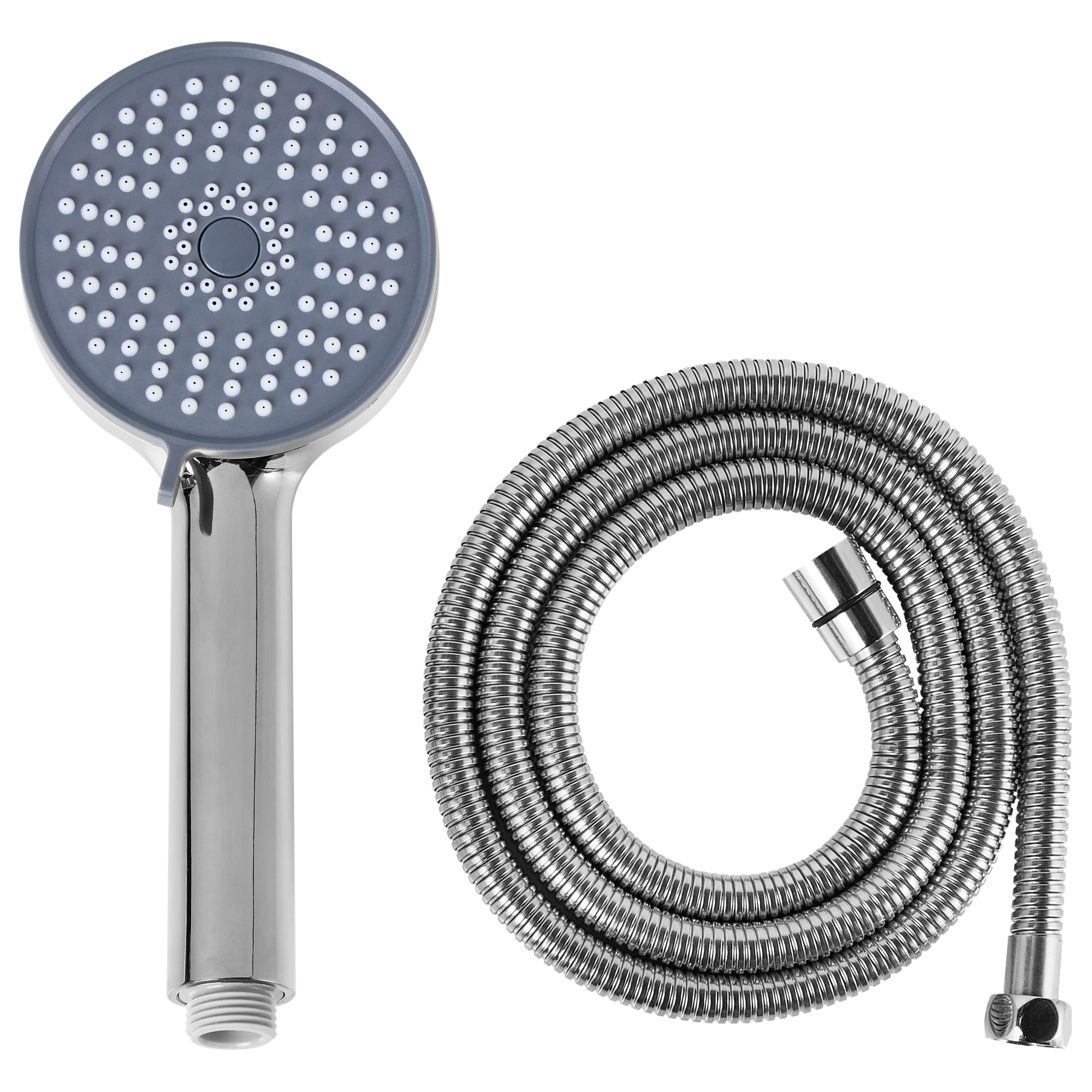 Kätevä suihkupää kumisuuttimilla ja letkulla. Nauti monipuolisesta suihkukokemuksesta tällä käsisuihkulla, jossa on kolme suihkutoimintoa: sadesuihku, voimakas suihku ja näiden kahden yhdistelmä. Toimintojen välillä vaihtaminen on vaivatonta, halusitpa sitten huuhdella saippuat pois, nauttia lempeästä, sadetta muistuttavasta virtauksesta tai hyödyntää voimakasta suihkua keskitettyä virtausta varten. Suihkupää ja sen mukana tuleva letku on valmistettu laadukkaasta ABS-muovista ja kestävästä ruostumattomasta teräksestä, ja siinä on helposti puhdistettavat kumisuuttimet. Se on yhteensopiva tavallisten letkuliitäntöjen kanssa.