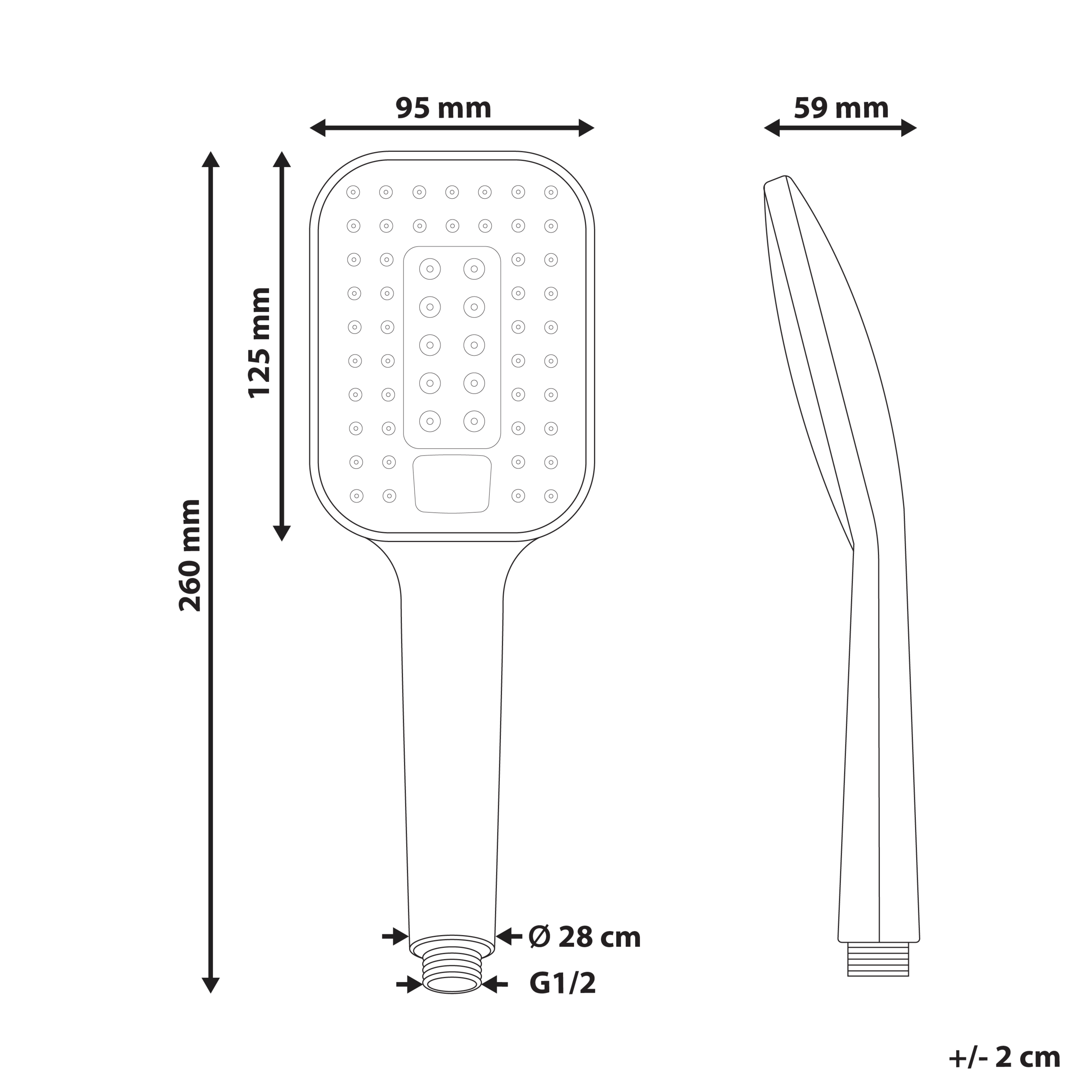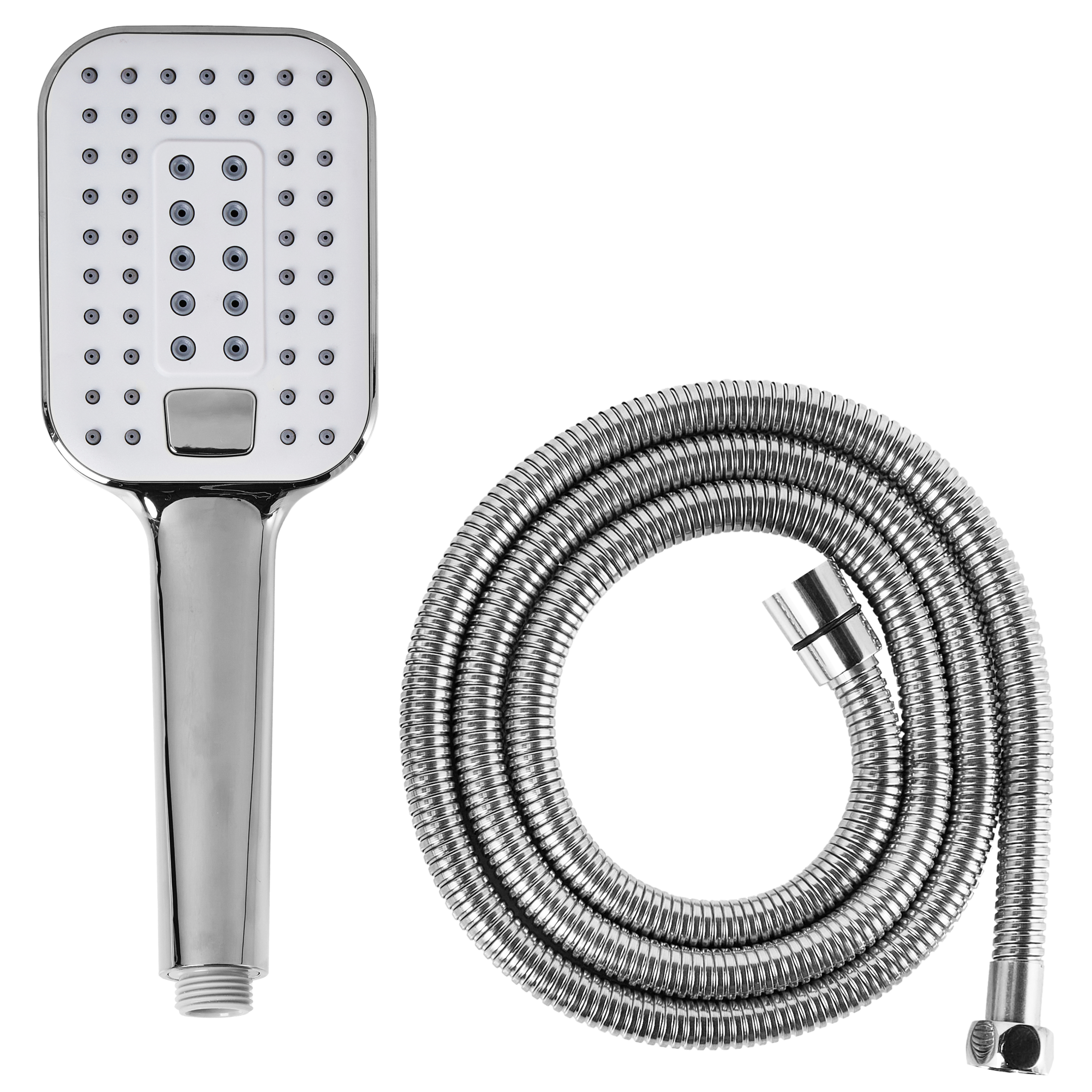 Monitoiminen suihkupää ja joustava letku. Tämä käsisuihku on suunniteltu jokapäiväistä mukavuutta varten. Se on varustettu neljällä monipuolisella suihkutoiminnolla: kaksi erilaista sadesuihkua, hierova suihku ja näiden yhdistelmä. Virtaus on mahdollista säätää tarpeen mukaan yksilöllisen kokemuksen takaamiseksi – rentouta lihakset hierovalla suihkulla tai anna veden valua lempeästi vartaloa pitkin sadetta muistuttavan virtauksen alla. Laadukkaasta ABS-muovista ja tukevasta ruostumattomasta teräksestä valmistettu suihkupää takaa kestävyyden ja tyylikkään viimeistelyn. Kumisuuttimet helpottavat kalkinpoistoa, ja mukana tuleva letku sopii yhteen tavallisten liitäntöjen kanssa.