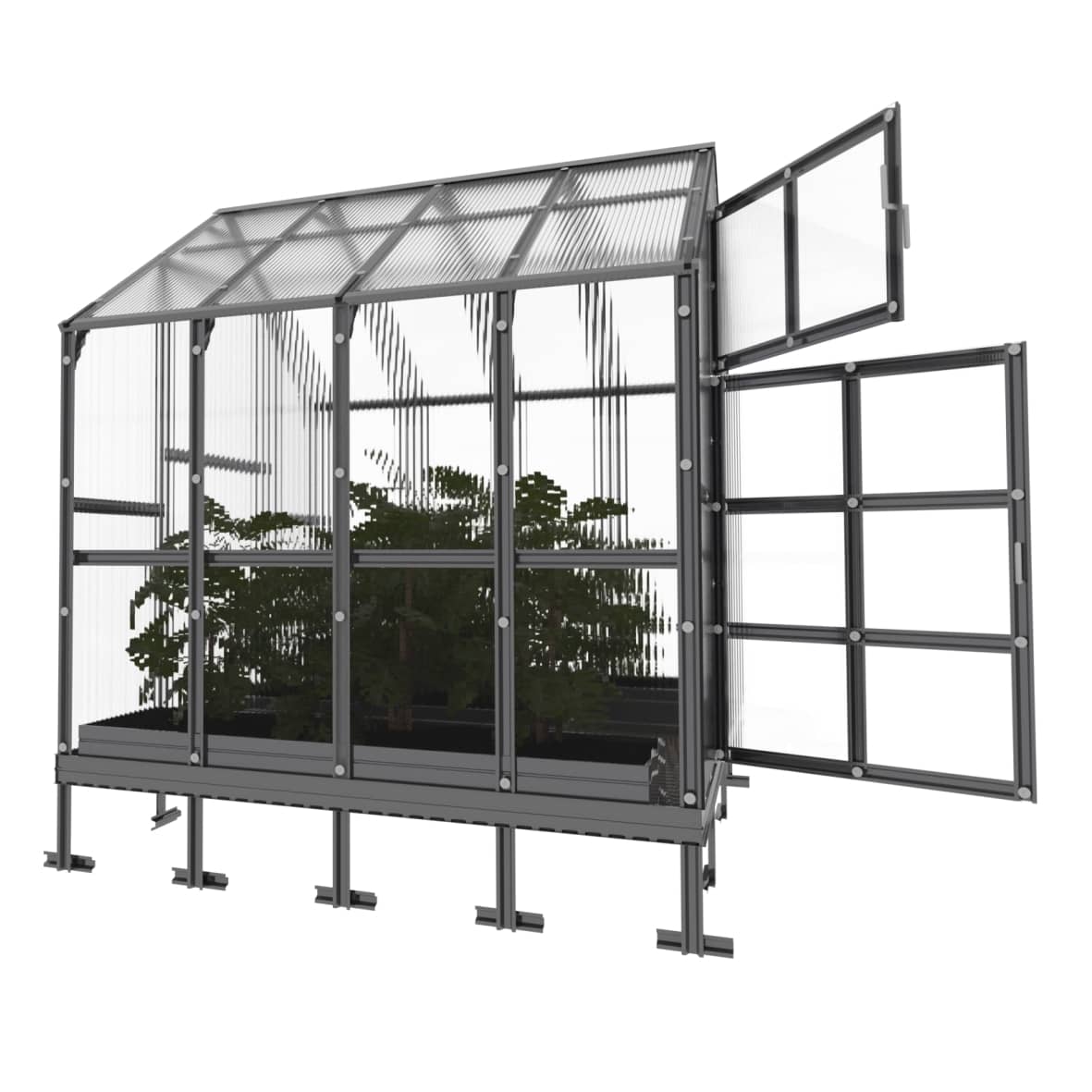 Pinnoitteena käytetään vain korkealaatuista, eurooppalaista, 6 mm paksua kanavapolykarbonaattia, joka kestää haitallisia UV-säteitä. Valitsemalla polykarbonaattipinnoitteisen kasvihuoneen voit olla varma sen kestävyydestä, sillä pinnoitteella on 10 vuoden valmistajan takuu.
