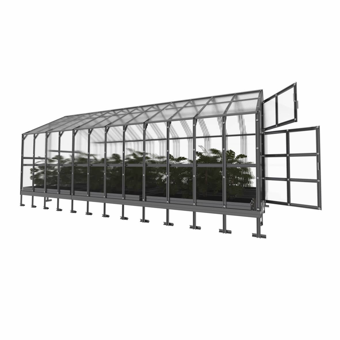 Tämä on harjakattoinen kasvihuone, joka sopii erinomaisesti erilaisten kasvien viljelyyn. Tämän tyyppisessä kasvihuoneessa on mahdollista hyödyntää optimaalisesti koko sen pinta-ala.