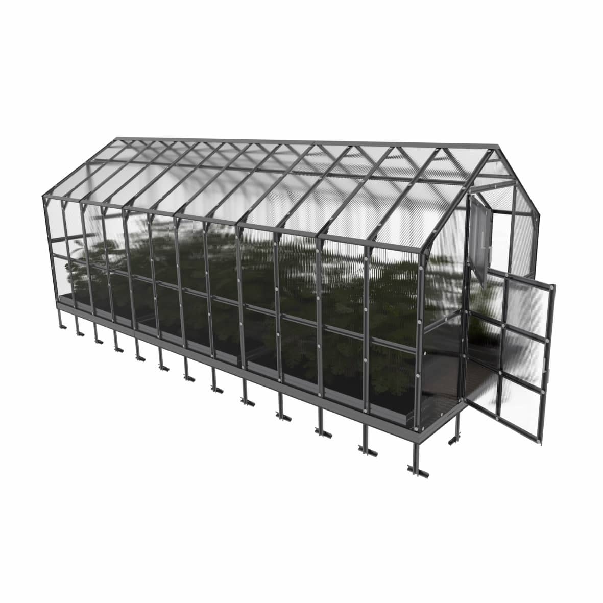 Pinnoitteena käytetään vain korkealaatuista, eurooppalaista, 6 mm paksua kanavapolykarbonaattia, joka kestää haitallisia UV-säteitä. Valitsemalla polykarbonaattipinnoitteisen kasvihuoneen voit olla varma sen kestävyydestä, sillä pinnoitteella on 10 vuoden valmistajan takuu.