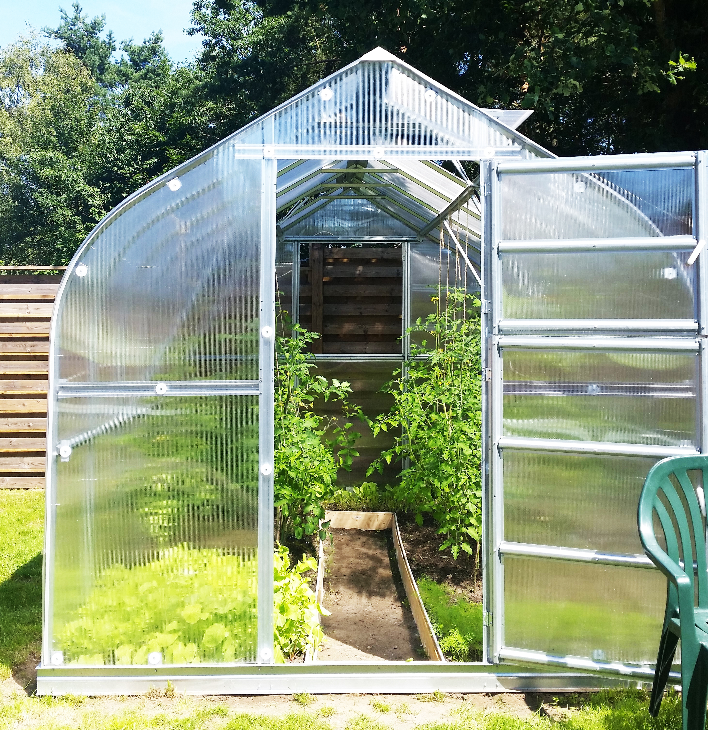 Jokainen kasvihuoneen kaari on kaivettu maahan noin 35 cm syvyyteen, joten kasvihuone seisoo tukevasti eikä pelkää tuulisia päiviä