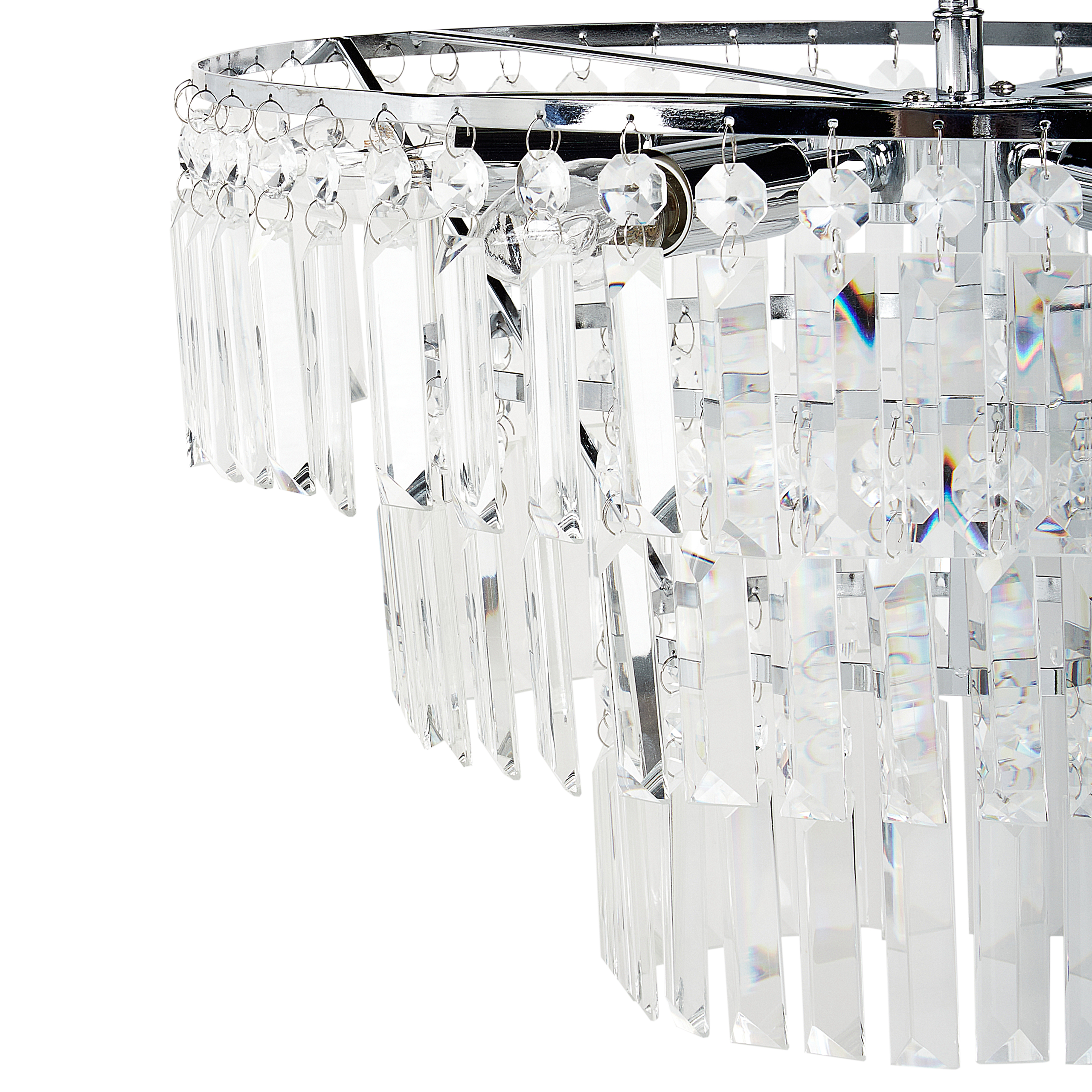 Elegantti kruunuvalaisin lasikristalleilla. Tämä raudasta valmistettu kattokruunu huokuu glamouria tyylikkäällä kromipinnoitteellaan. Se vangitsee ja heijastaa valoa kauniisti kolmen, kirkkailla lasikoristeilla koristellun tason ansiosta, tuoden ylellistä ja hienostunutta tunnelmaa mihin tahansa huoneeseen. Moderneja materiaaleja ja klassista muotoilua yhdistävä kruunuvalaisin toimii eleganttina keskipisteenä niin moderneissa kuin perinteisissäkin tiloissa.