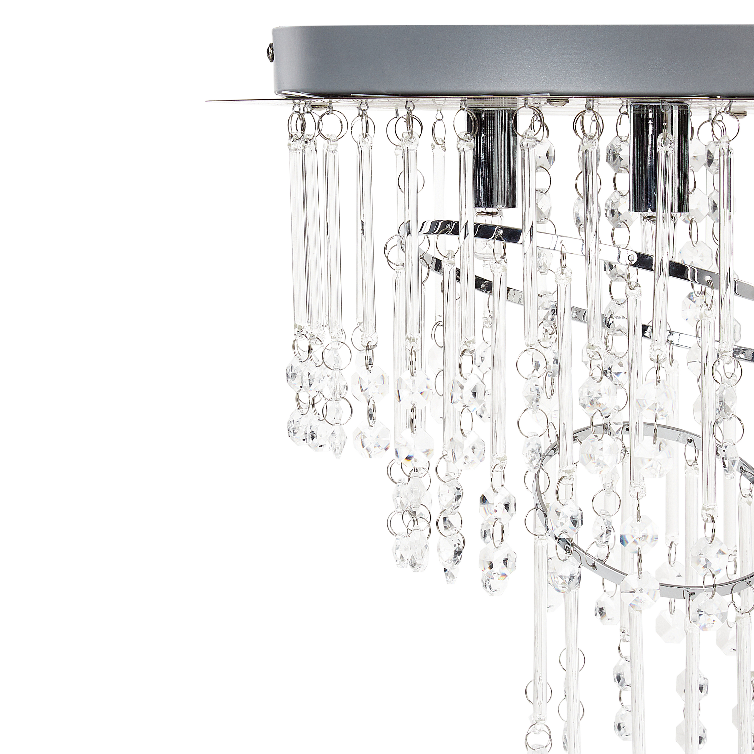 Glamour kruunuvalaisin lasikristalleilla. Tässä nykyaikaisessa kattokruunussa on kiillotettu rautarunko, joka on viimeistelty kromatulla viimeistelyllä. Sitä koristavat huolellisesti hiotut lasikristallit, jotka roikkuvat tyylikkäästi ja vangitsevat sekä heijastavat valoa, luoden näyttävän valaistuksen. Minimalistinen mutta ylellinen muotoilu tekee siitä täydellisen keskipisteen nykyaikaisiin ja glamour-tyylisiin asuintiloihin.