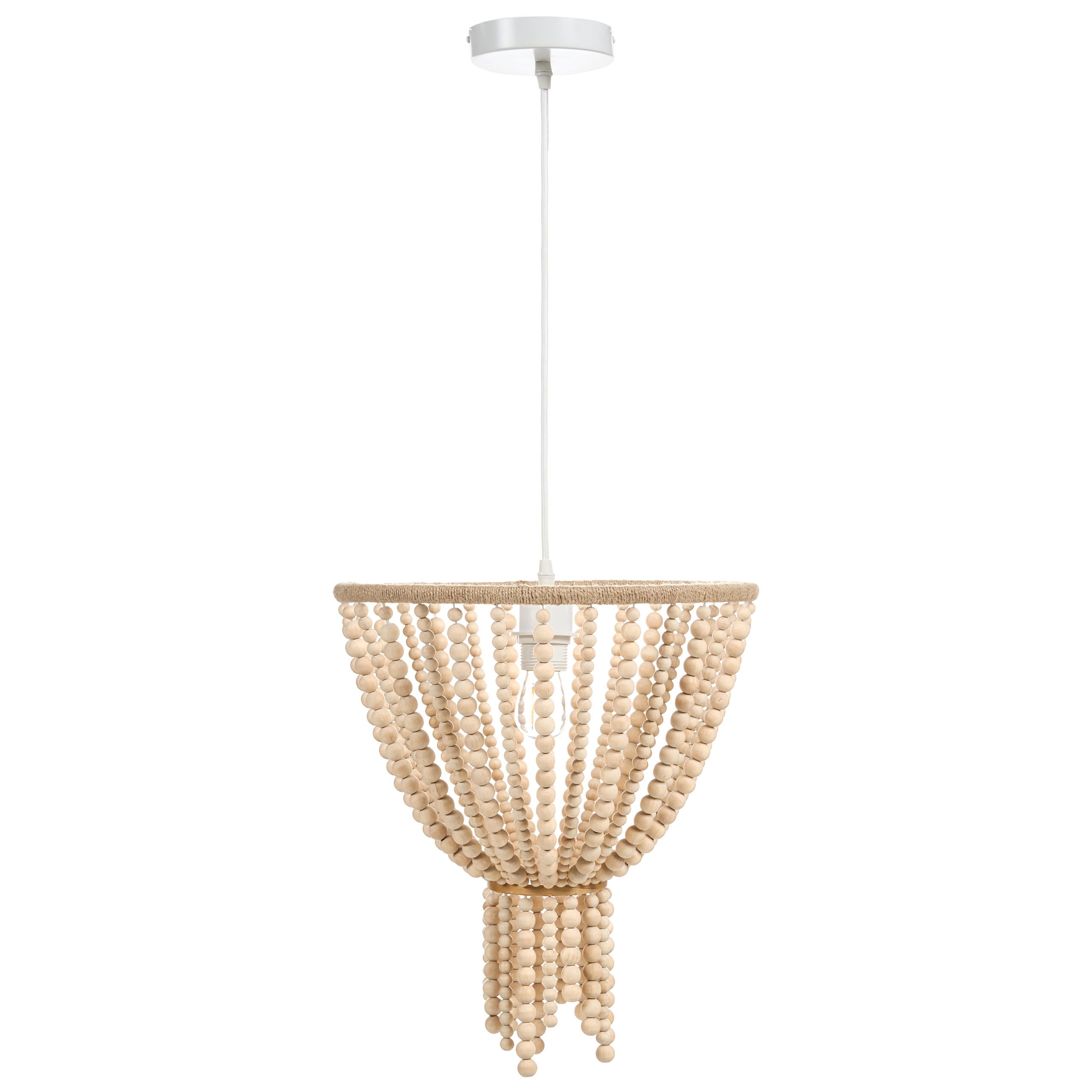 Boho-tyylinen kattokruunu puuhelmistä. Kohota sisustusta tällä käsintehdyllä kattokruunulla, joka on valmistettu kestävistä kumipuuhelmistä ja luo lämpimän, luonnollisen tunnelman. Sen kaskadimainen muotoilu tuo pehmeän, elegantin lisän, joka sopii täydellisesti ruokailutiloihin ja kodikkaisiin olohuoneisiin. Jokainen valaisin on valmistettu käsin, minkä ansiosta se tuo kotiin persoonallisen säväyksen.