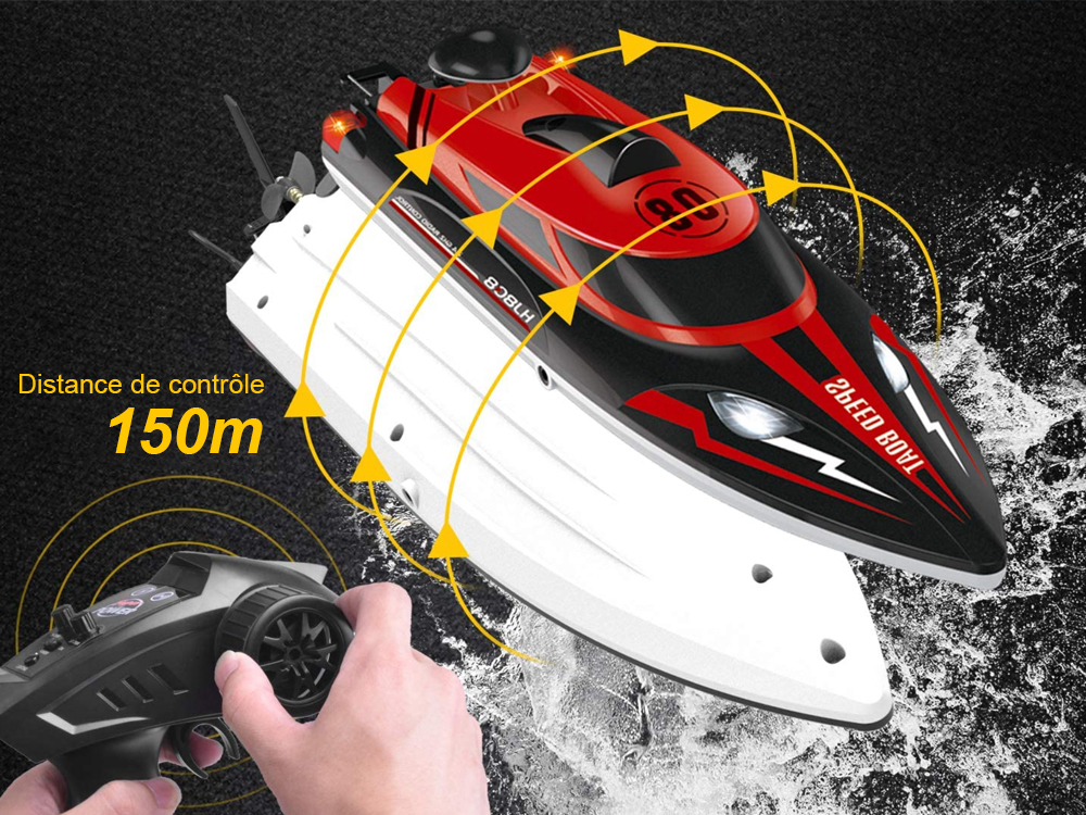 Tämä kauko-ohjattava SpeedBoat-vene vie sinut mille tahansa vesialueelle jännittävään kokemukseen. Tämän lelun maksiminopeus on 25km/h ja taajuus 2,4Ghz. Sen uppoamisanturi sammuttaa laitteen automaattisesti, kun olet poissa vedestä. Sen ohjausetäisyys on jopa 150 m ja akun kesto noin 20 minuuttia.