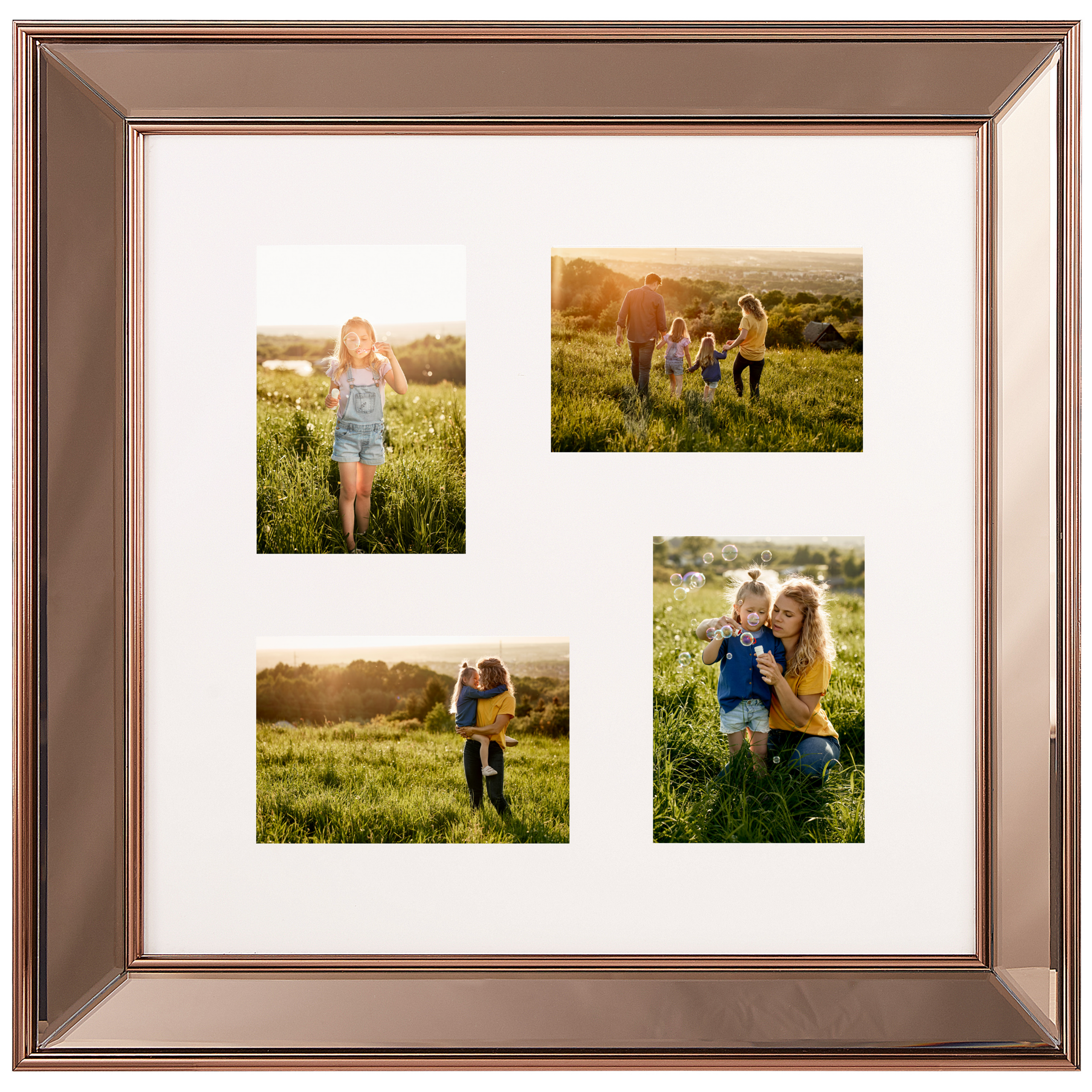Käytännöllinen valokuvakehys. Kaunis valokuvakehys neljälle kuvalle. Tämä perinteinen suorakulmainen valokuvakehys sopii kotiin kuin kotiin. Kehys on kuparinvärinen ja se sopii yhteen monenlaisten huonekalujen ja sisustustarvikkeiden kanssa. Jos olet miettinyt, että haluaisit laittaa lempivalokuvasi esille, nyt on sopiva hetki tarttua tuumasta toimeen. Tällä kehyksellä saat kätevästi monta kuvaa esille yhdellä iskulla.
