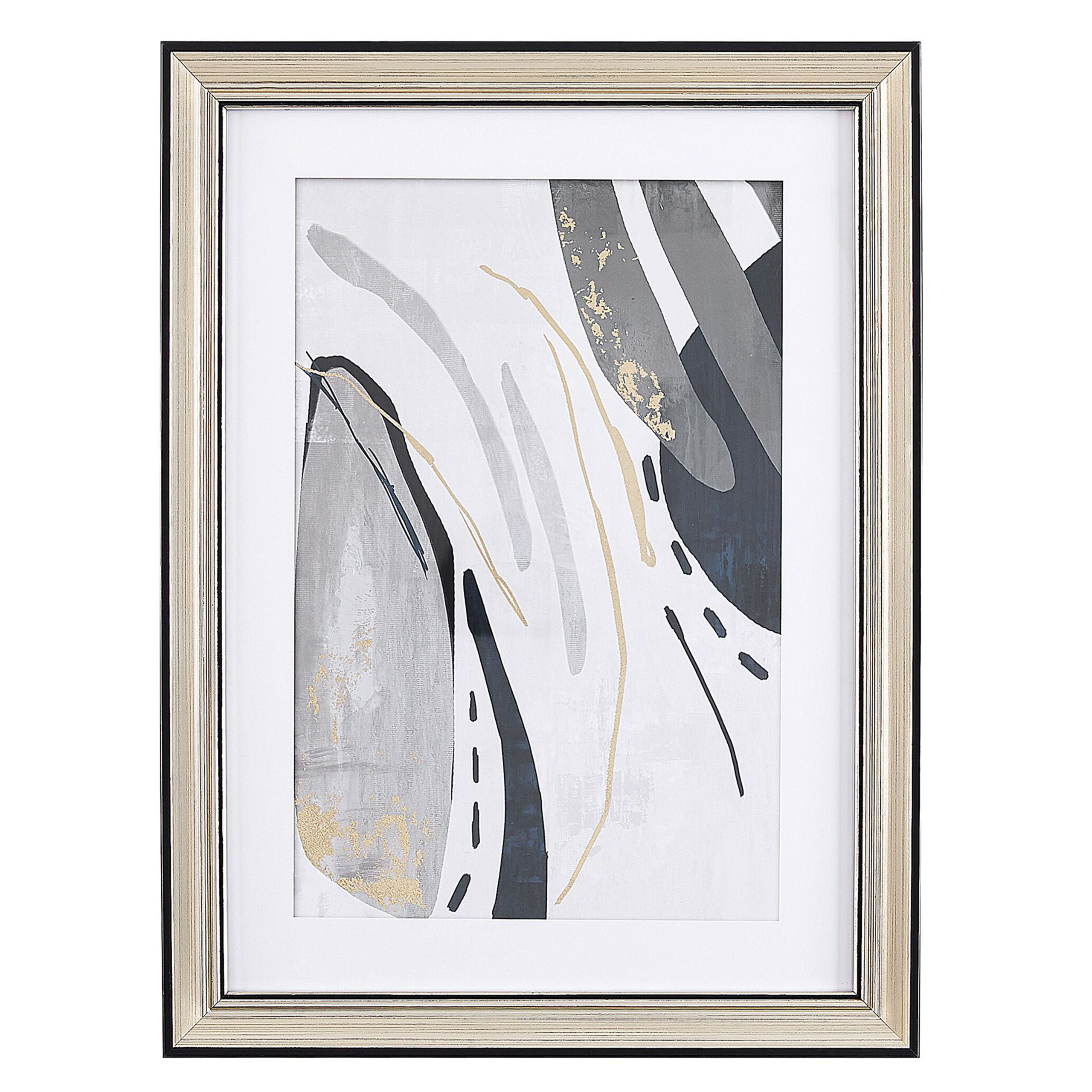 Abstrakti kehystetty tuloste. Tämä minimalistinen taulu tuo tyylikkyyttä mihin tahansa valkoiseen, harmaaseen tai siniseen olohuoneeseen, eteiseen tai makuuhuoneen seinään. Tätä abstraktia kuvaa on korostettu passepartout'lla ja ohuella messinkikehyksellä ja se näyttää hyvältä yksin tai muihin saman tyylisiin tauluihin yhdistettynä. Taulun takana on kaksi kätevää koukkua ripustusta varten.