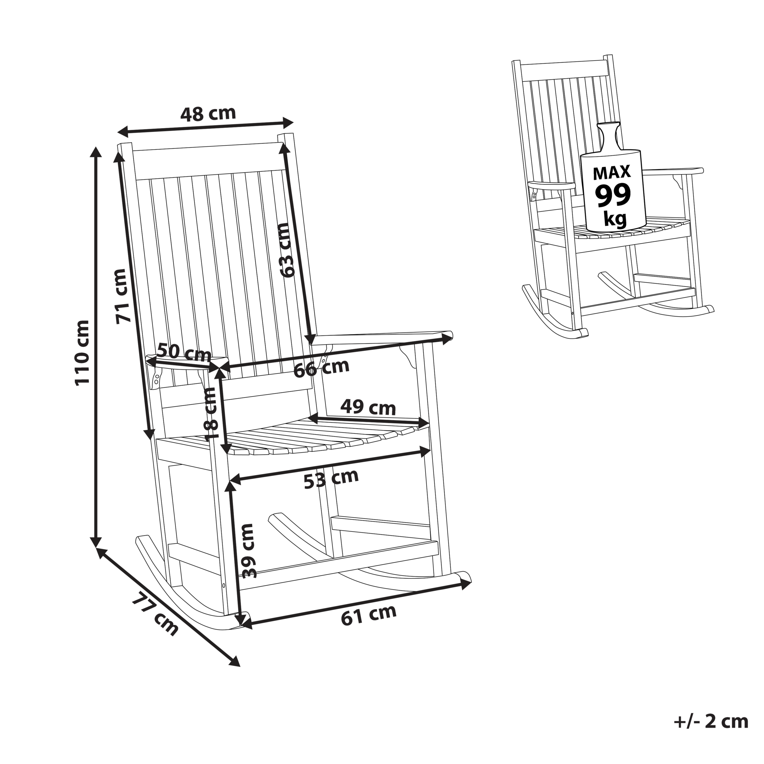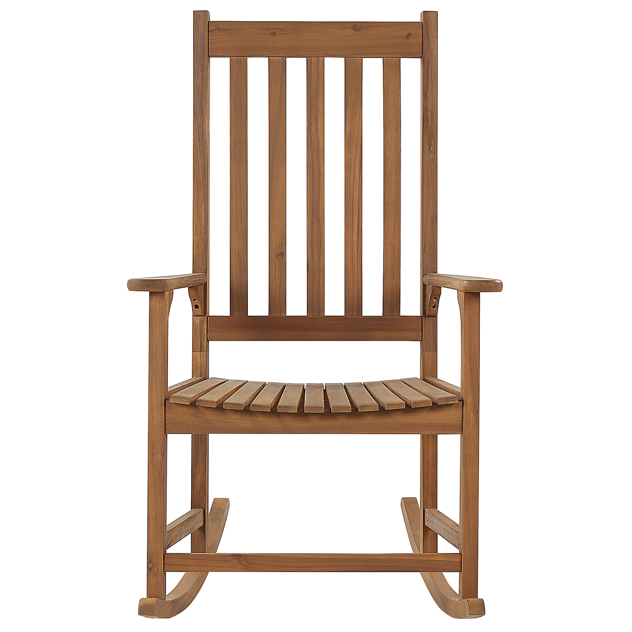 Rustiikkinen keinutuoli sisä- ja ulkokäyttöön. Rentoudu kahvikupin ja kirjan parissa tässä rustiikkisessa keinutuolissa. Korkealaatuisesta akaasiasta valmistettu tuoli sopii moniin erilaisiin sisustuksiin kauniin vaalean sävynsä ja minimalistisen muotoilunsa ansiosta. Koska keinutuoli on valmistettu luonnollisista materiaaleista, se sopii sekä sisälle että ulos.