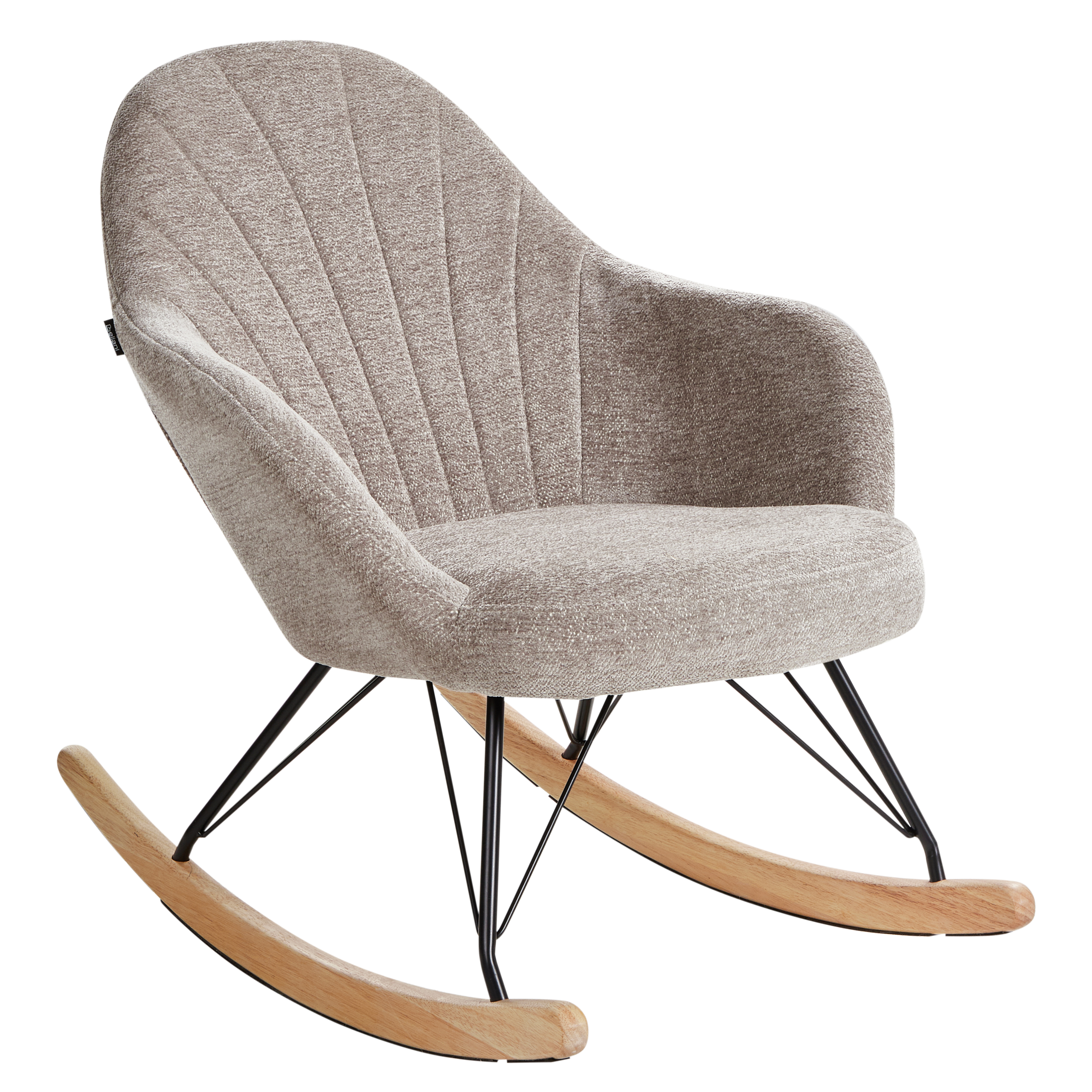 Moderni verhoiltu keinutuoli. Lisää ripaus nykyaikaista viehätystä kotiisi tällä keinutuolilla. Minimalistisesti muotoiltu keinutuoli on verhoiltu pehmeällä ja kestävällä polyesterikankaalla, joka kestää päivittäisen käytön. Käsinojat tarjoavat lisämukavuutta ja tukevat metallijalat varmistavat vakauden. Kaarevat kumipuiset jalakset takaavat lempeän ja tasapainoisen keinumisen. Keinutuoli sulautuu saumattomasti moderneihin sisustuksiin, olohuoneista makuuhuoneisiin.