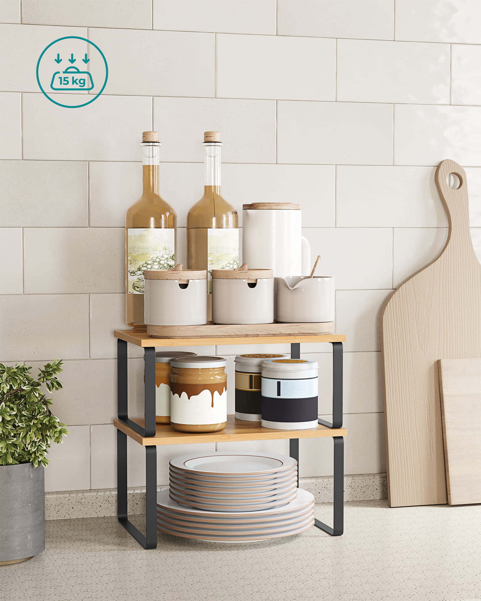 Toisen hyllyn pienempi koko mahdollistaa sen piilottamisen suuremman hyllyn alle, mikä säästää tilaa tarvittaessa.