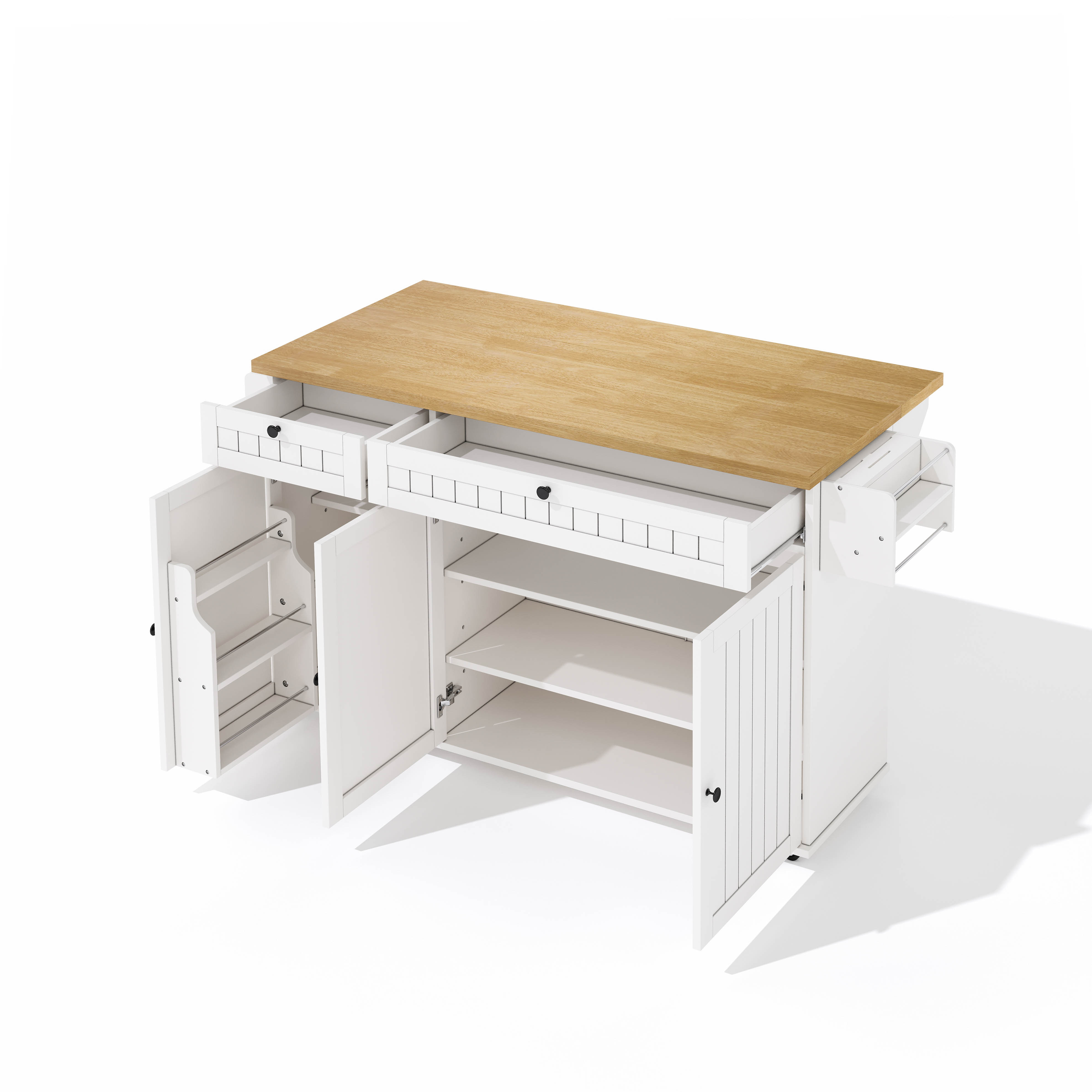 Keittiösaareke, 137 cm, taittuvalla kannella, 2 laatikkoa, säilytyskaappi, valkoinen
