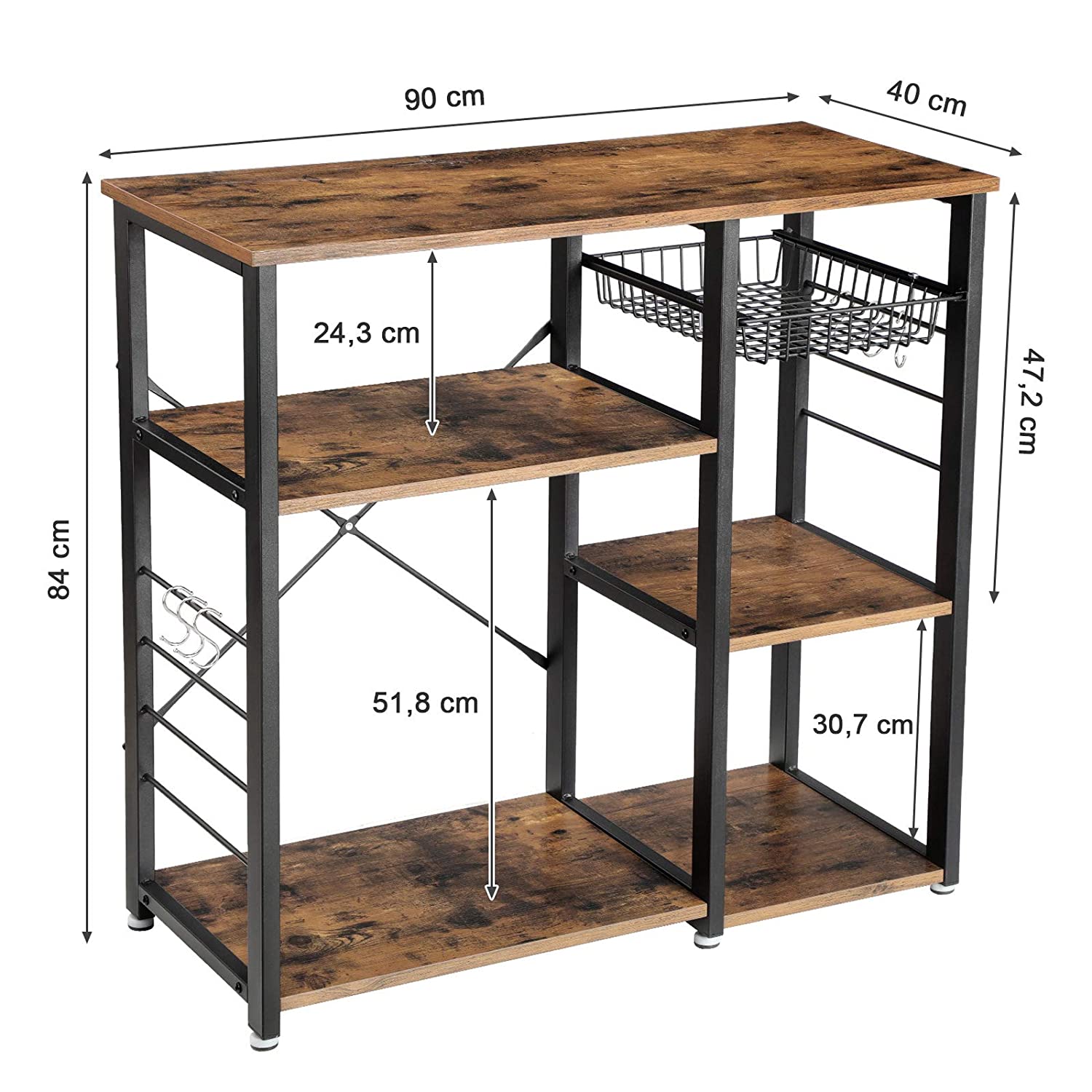 Tämä hylly on monipuolinen ja toimiva; se sopii täydellisesti keittiöösi, ja hyllyjen ansiosta suosikkiasioihin on helppo päästä käsiksi.