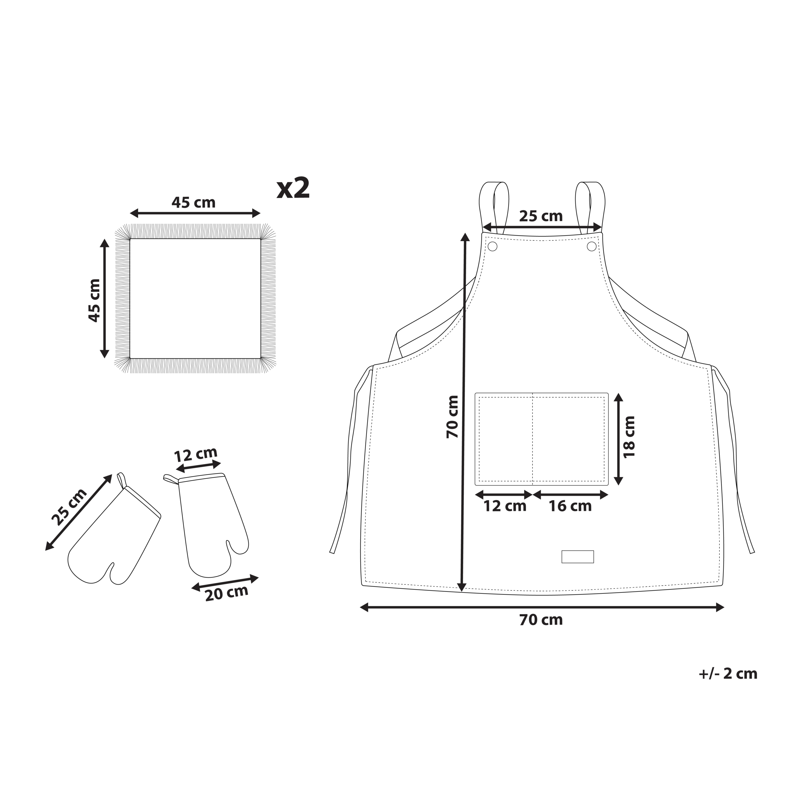 Hintaan sisältyy: 1 x Esiliina, 2 x Patakinnas, 2 x Keittiöpyyhe
