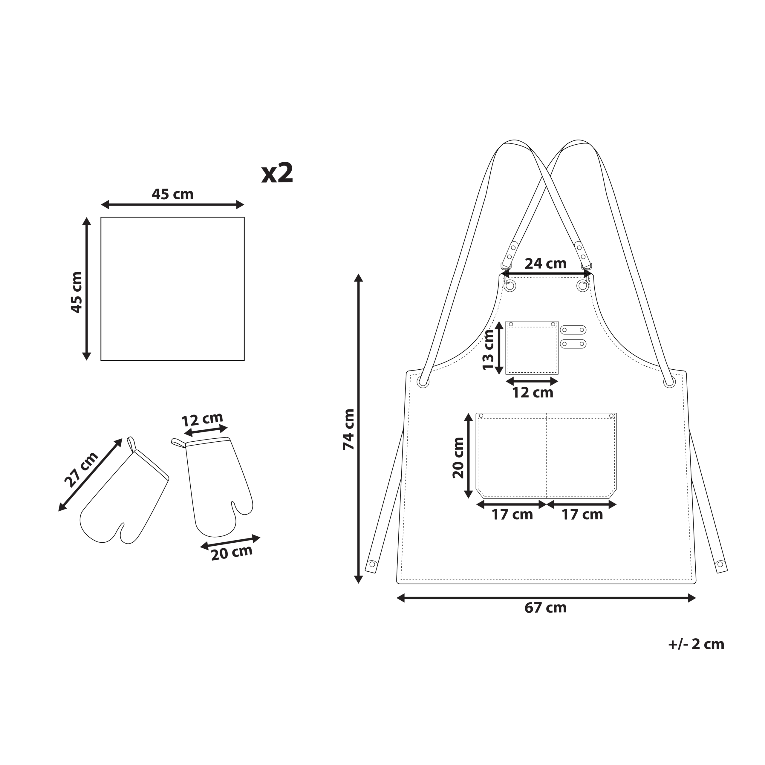 Hintaan sisältyy: 1 x Esiliina, 2 x Patakinnas, 2 x Keittiöpyyhe