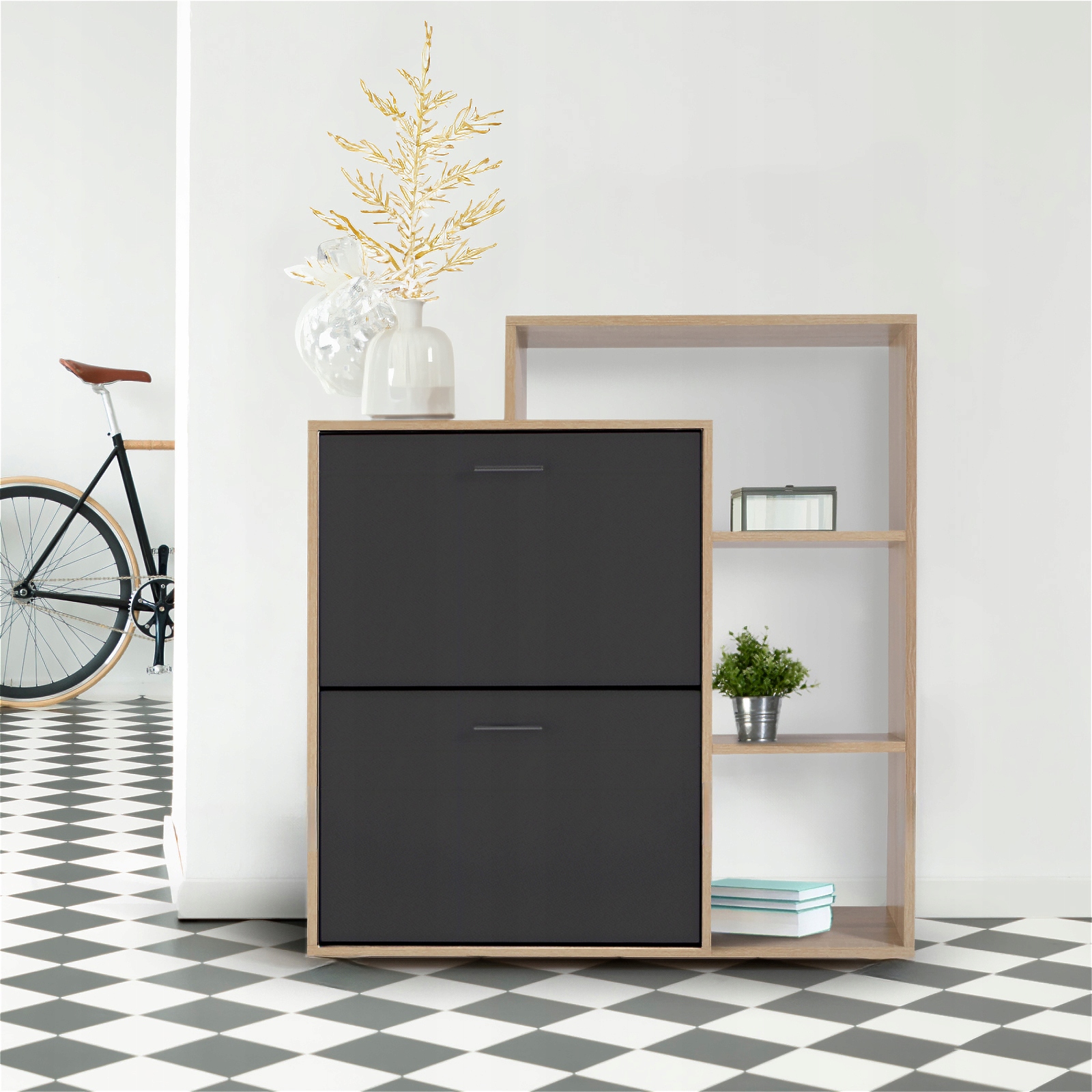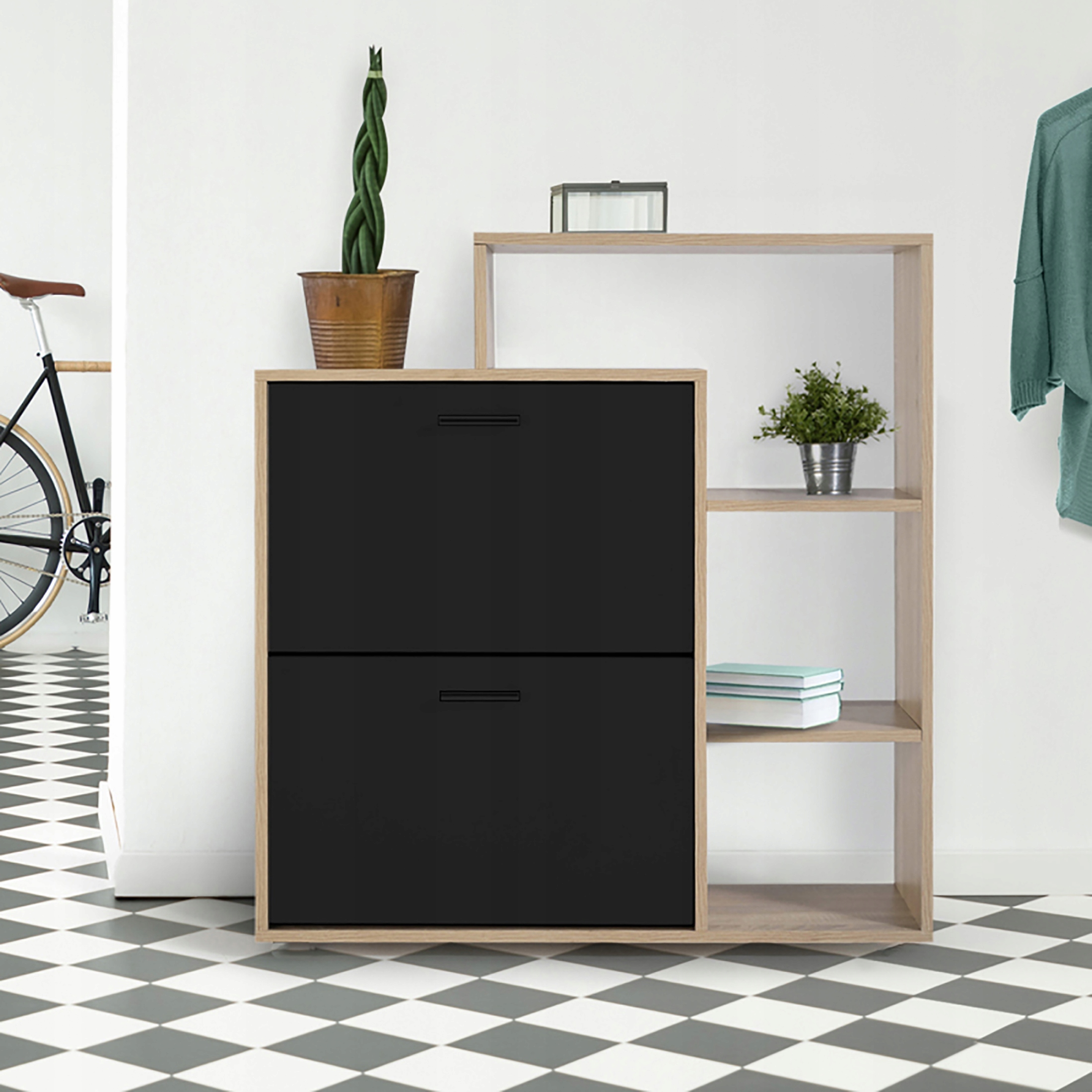 Erillisten lokeroiden ansiosta ne mahdollistavat erityyppisten jalkineiden säilyttämisen samalla, kun säilytät järjestyksen ja estetiikan asuintilassasi. Se sopii täydellisesti eteiseen, pukeutumishuoneeseen tai makuuhuoneeseen, ja helpottaa oikeiden jalkineiden valintaa joka päivä.