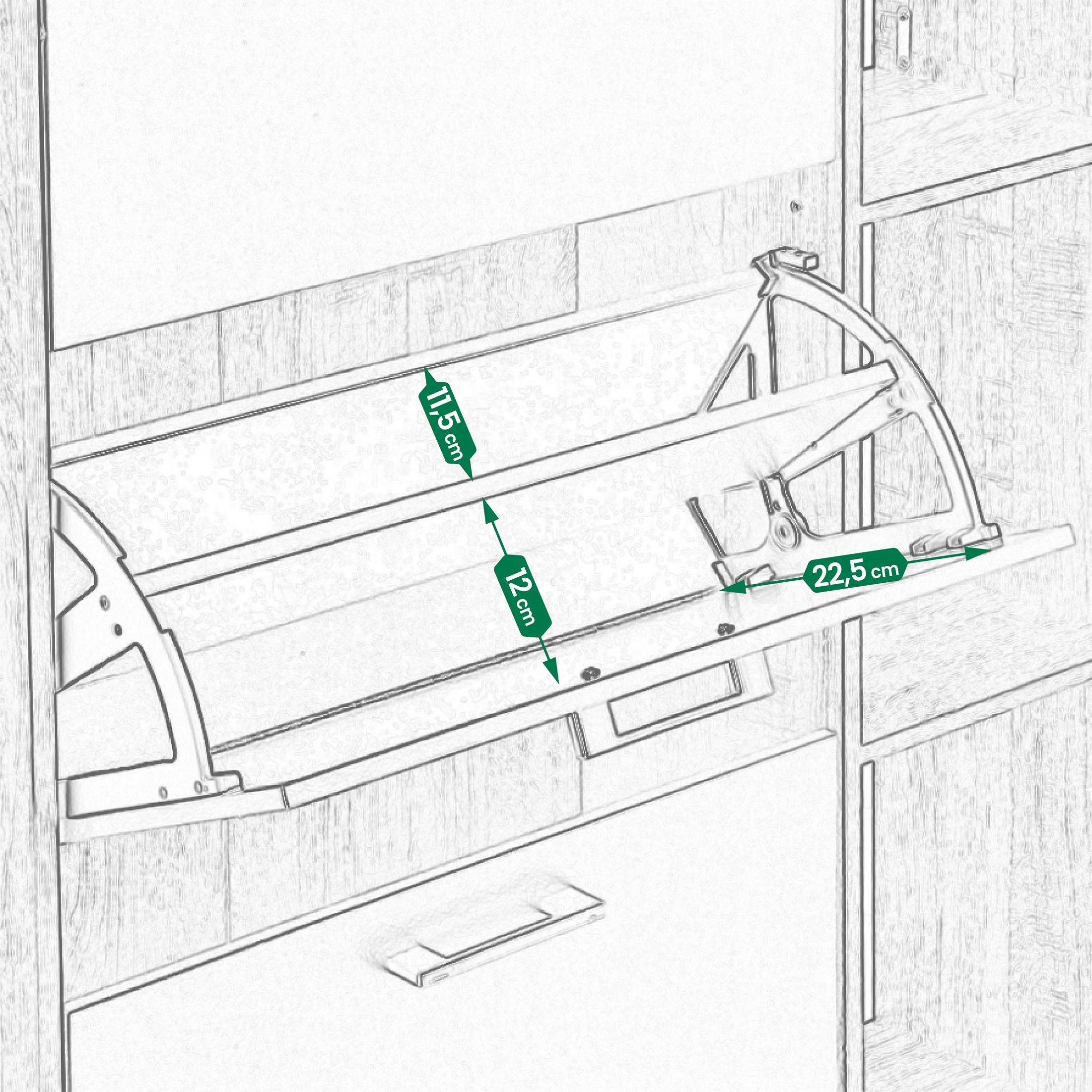 Erillisten lokeroidensa ansiosta se mahdollistaa erityyppisten kenkien säilyttämisen samalla, kun ylläpidetään järjestystä ja estetiikkaa asuintilassasi. Se sopii täydellisesti eteiseen, vaatekaappiin tai makuuhuoneeseen, ja se helpottaa oikeiden jalkineiden valitsemista joka päivä.
