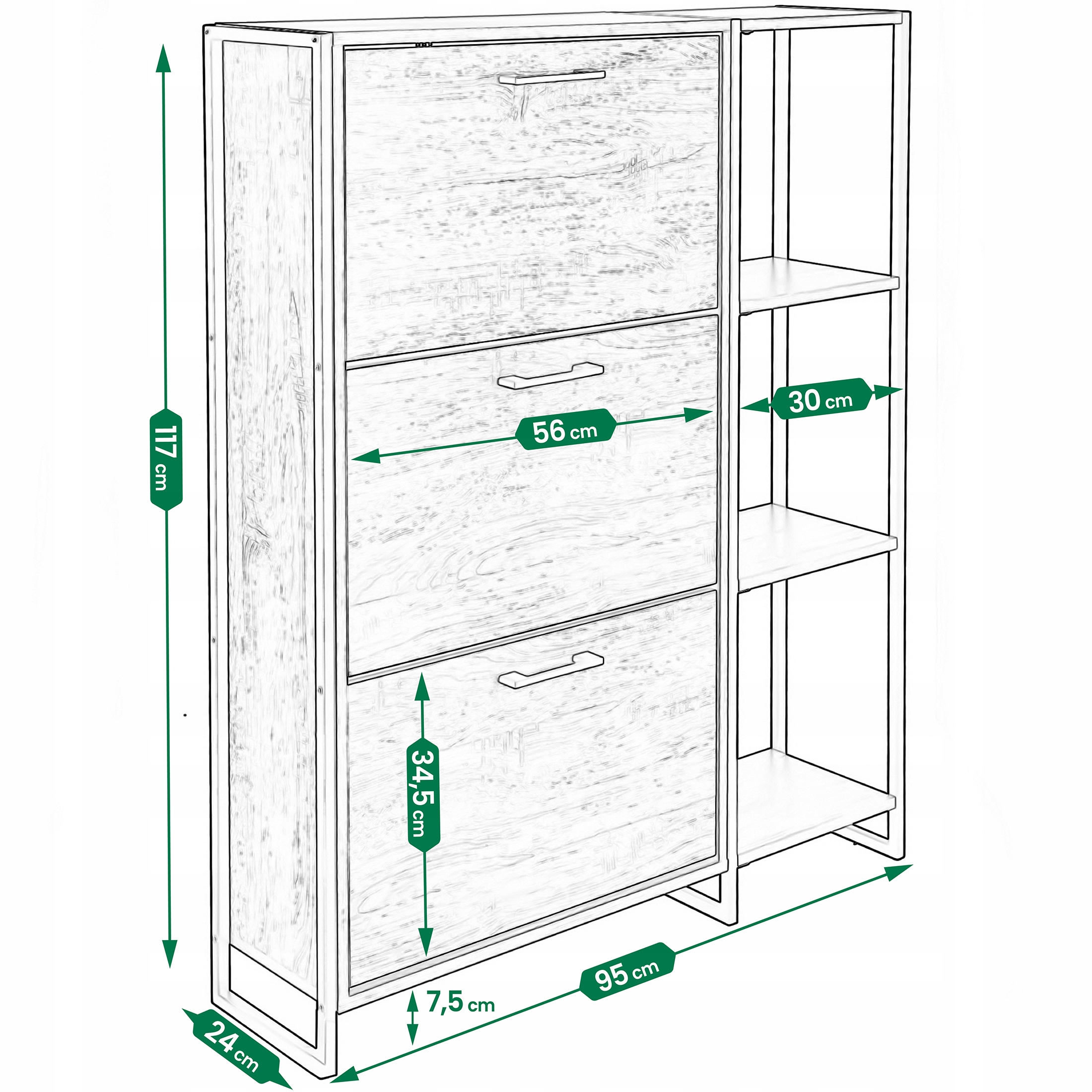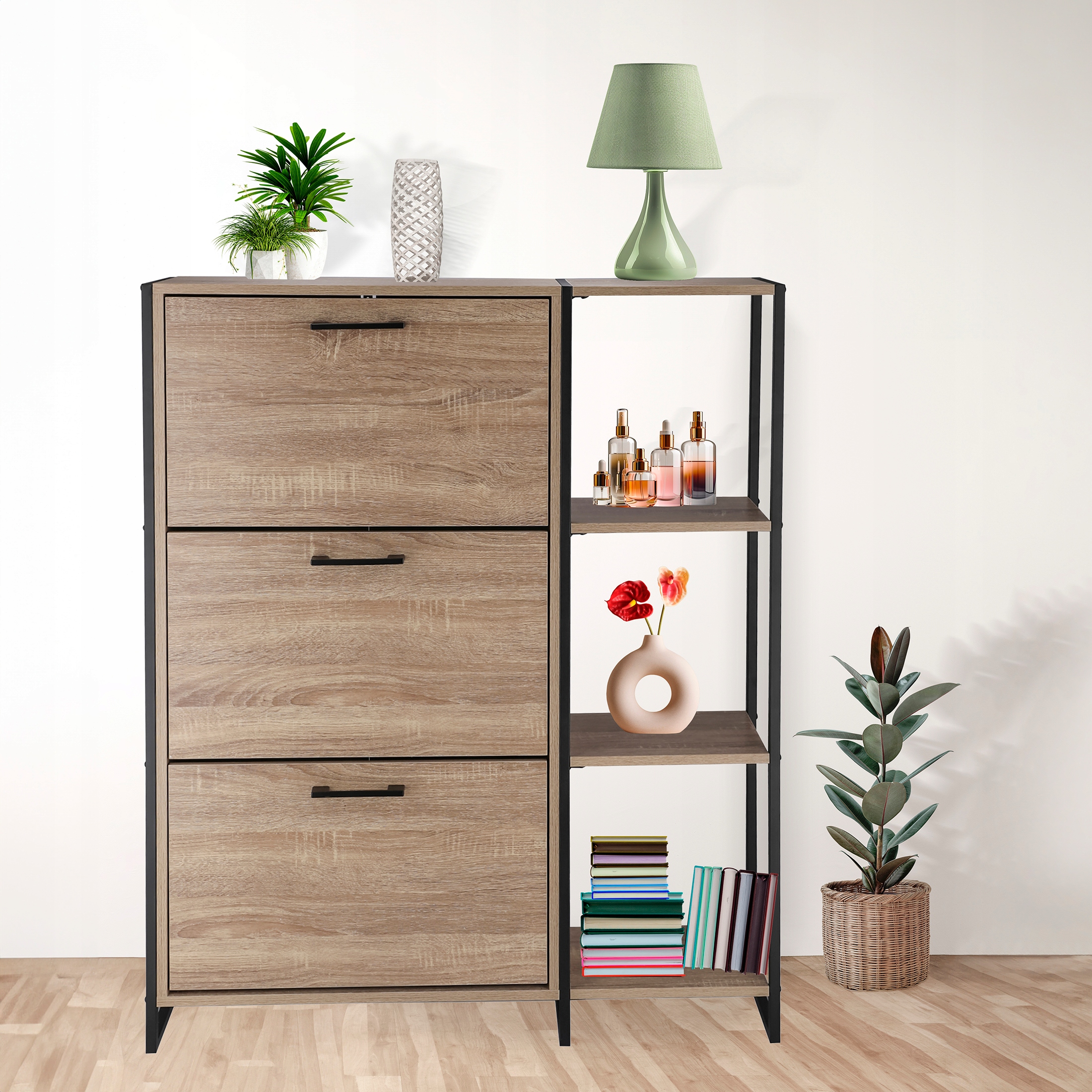 Kenkäkaappi, 3-lokeroinen kenkäteline, tilava lipasto eteiseen, LOFT