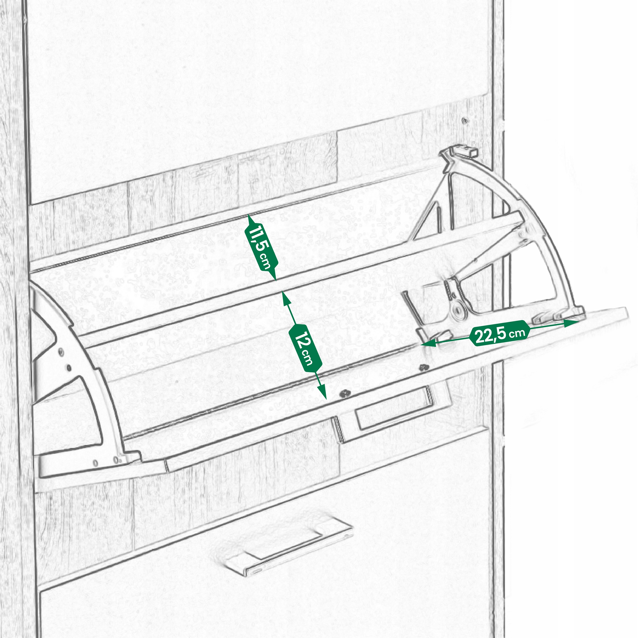 Erillisten lokeroidensa ansiosta se mahdollistaa erityyppisten kenkien säilyttämisen samalla, kun ylläpidetään järjestystä ja estetiikkaa asuintilassasi. Se sopii täydellisesti eteiseen, vaatekaappiin tai makuuhuoneeseen, ja se helpottaa oikeiden jalkineiden valintaa joka päivä.