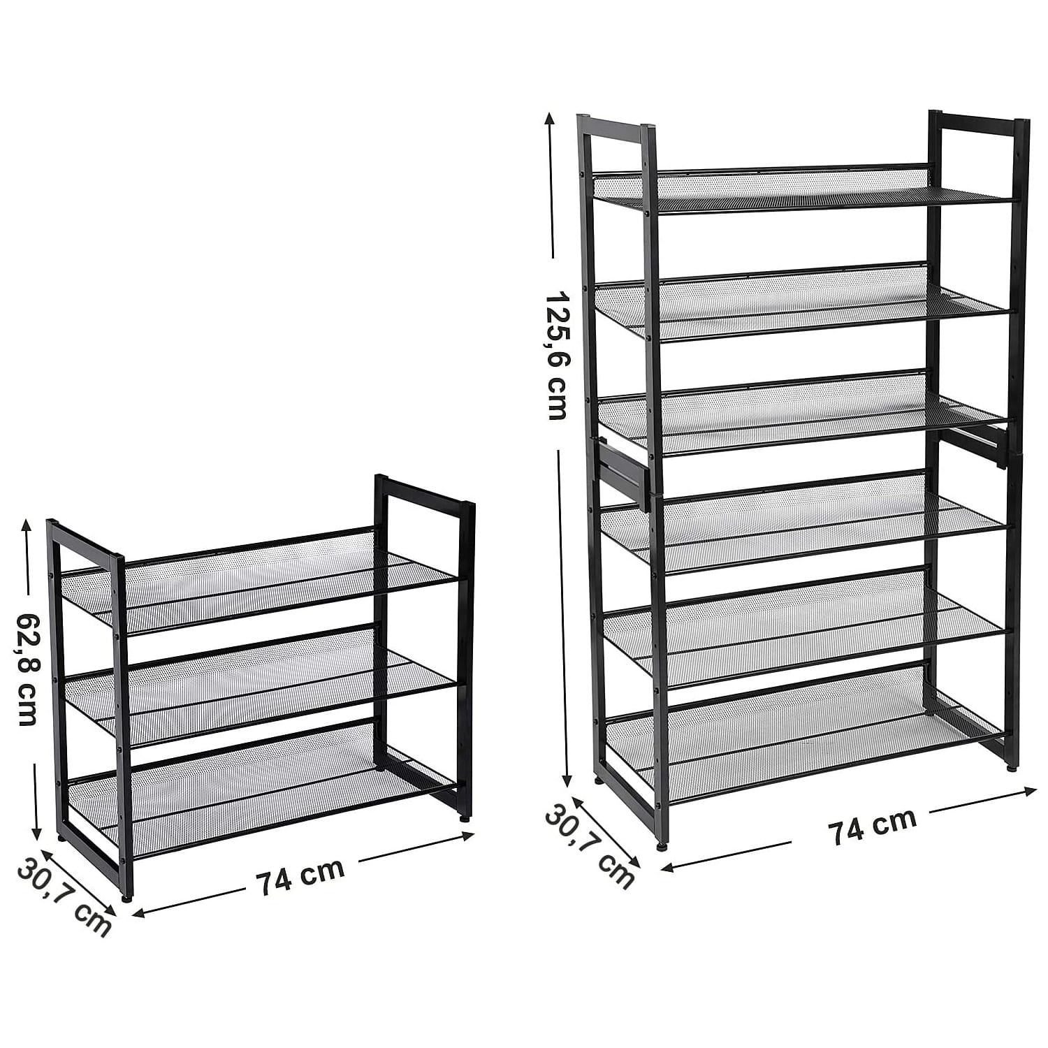 - Modulaarinen: pakkauksessa 2 liitintä kahden telineen yhdistämiseksi (6 hyllyä).