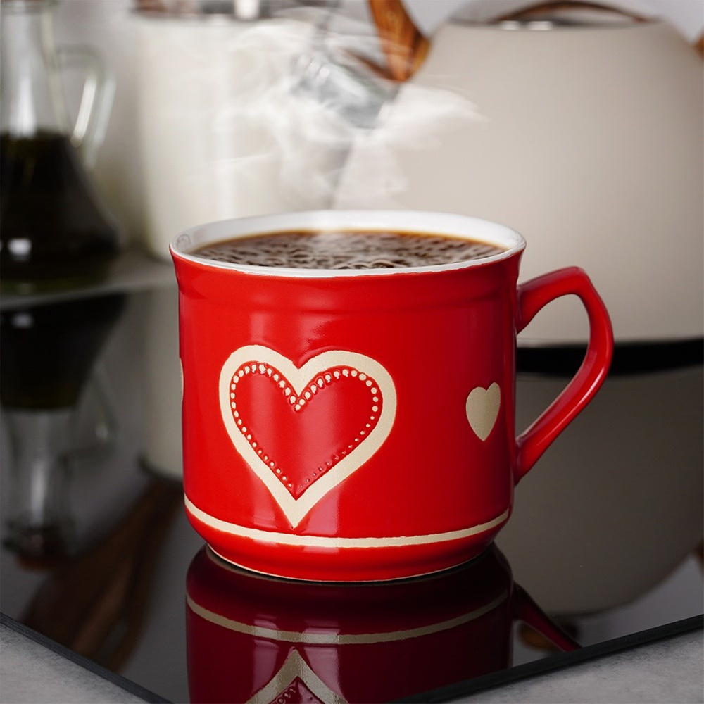 USKEAMA - Valmistettu korkealaatuisesta punaisesta keramiikasta, jossa on kaunis sydänkoristelu. Muki on kaunis keittiön sisustuselementti.