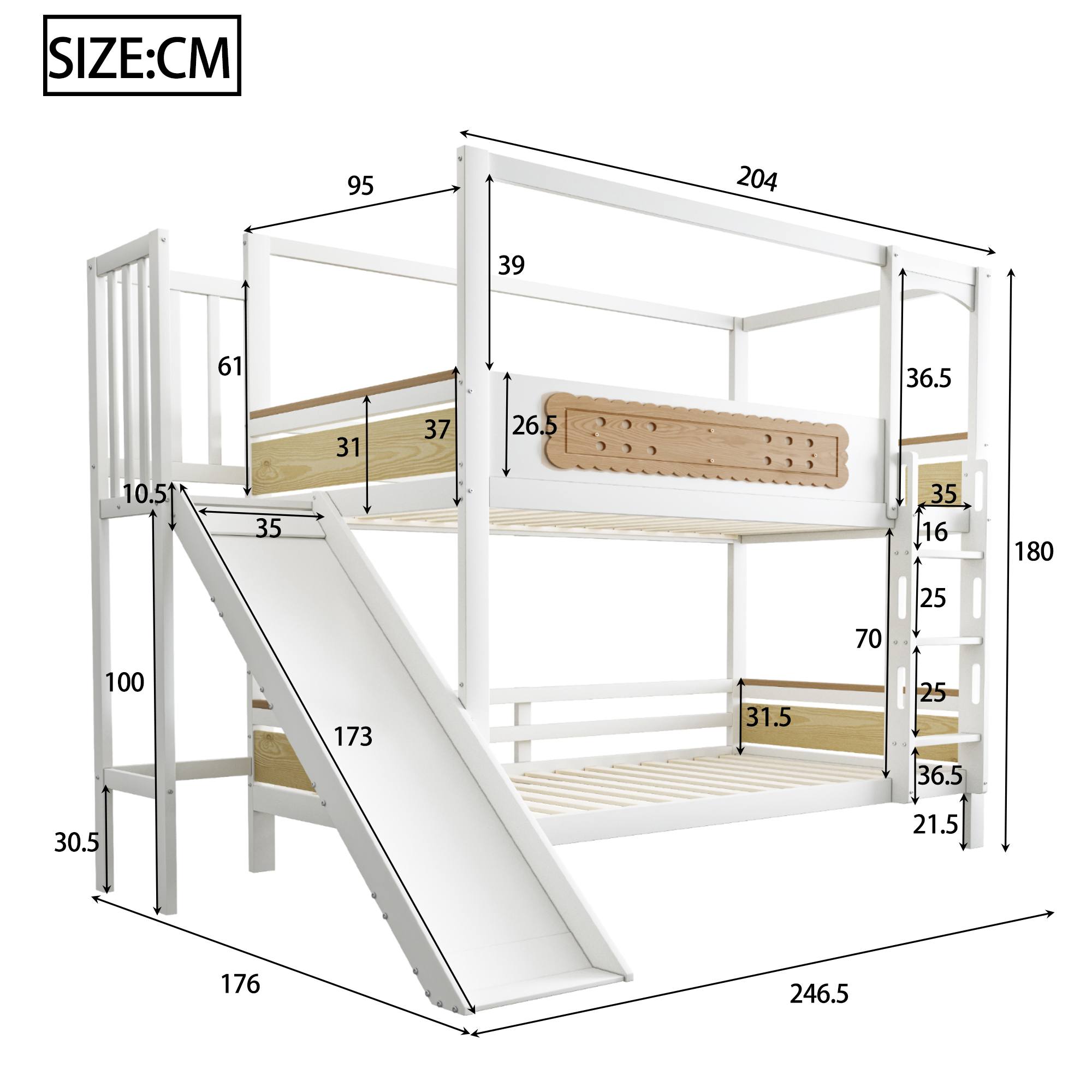 Tukeva tuki – Kerrossängyn molemmissa kerroksissa on korkealaatuisesta puusta valmistetut sälepohjat, jotka takaavat kestävän ja luotettavan sängynpohjan. Modernin valkoisen ja luonnollisen puun syykuvion yhdistelmä luo lämpimän, klassisen estetiikan, joka sopii mihin tahansa lastenhuoneen tyyliin.