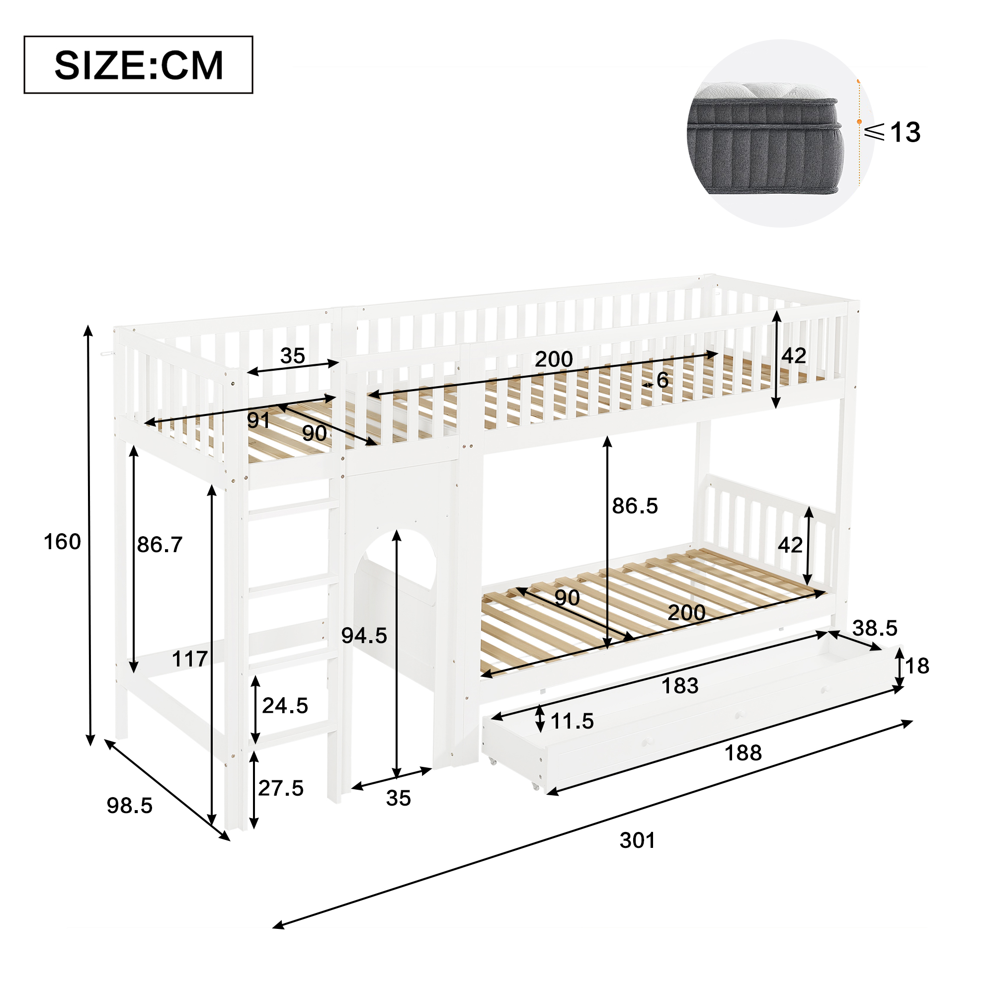 Sopiva patja (patja ei sisälly toimitukseen): 90 x 200 cm (patjan paksuus ≤ 13 cm)