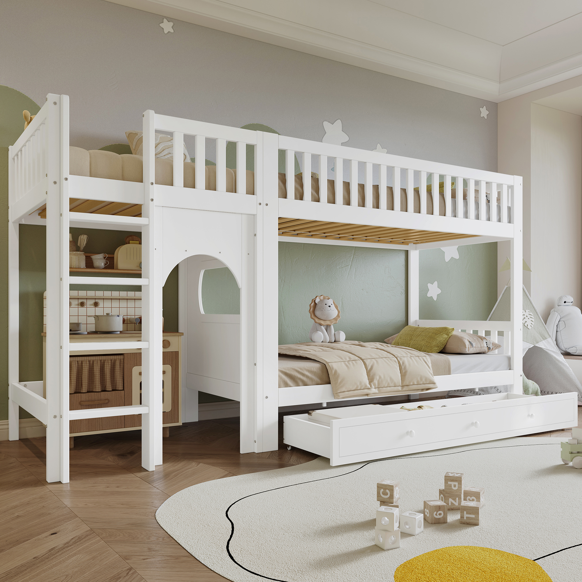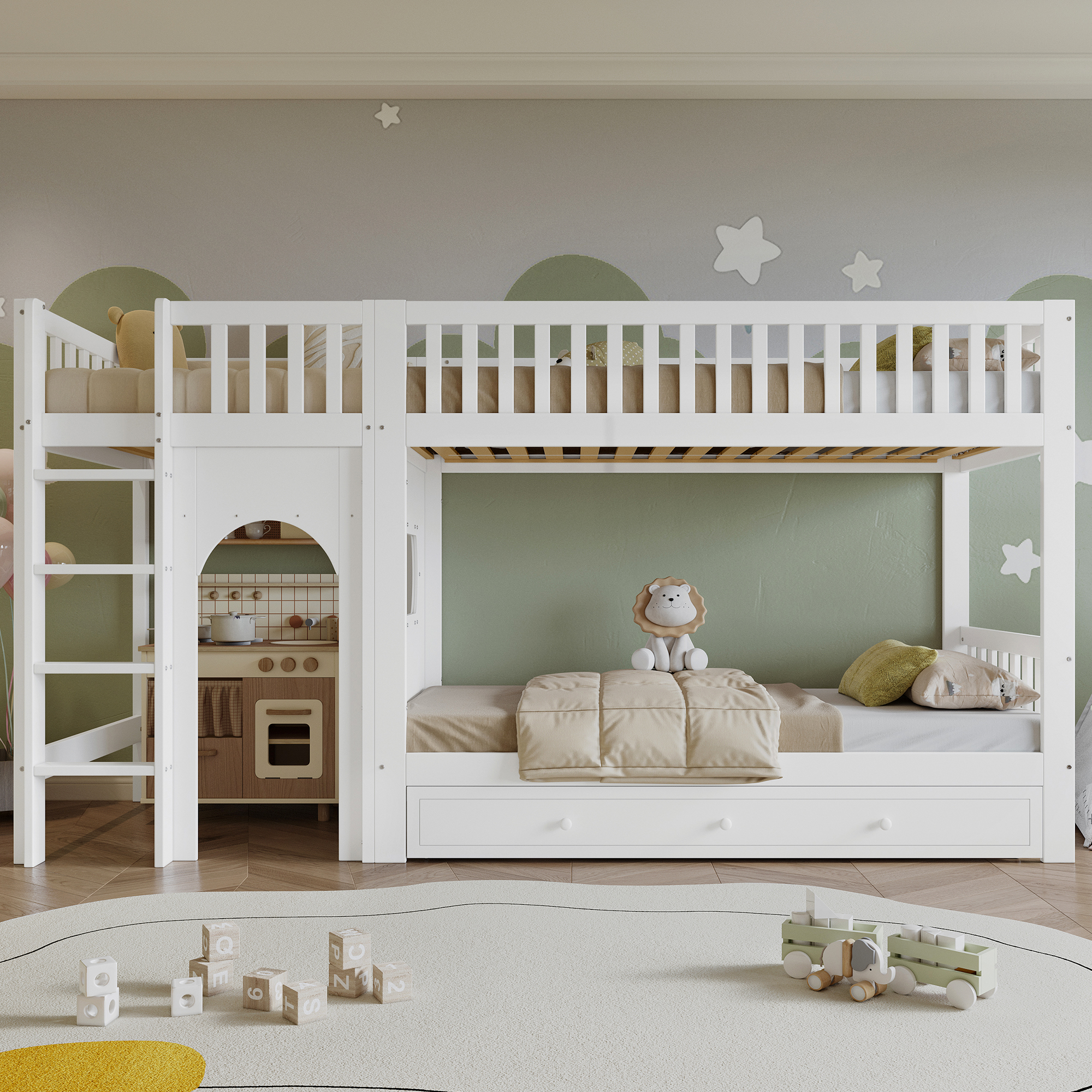 Käytännölliset kulkutikkaat: Neliportaiset suorat tikkaat turvalliseen ja helppoon pääsyyn kerrossänkyyn.