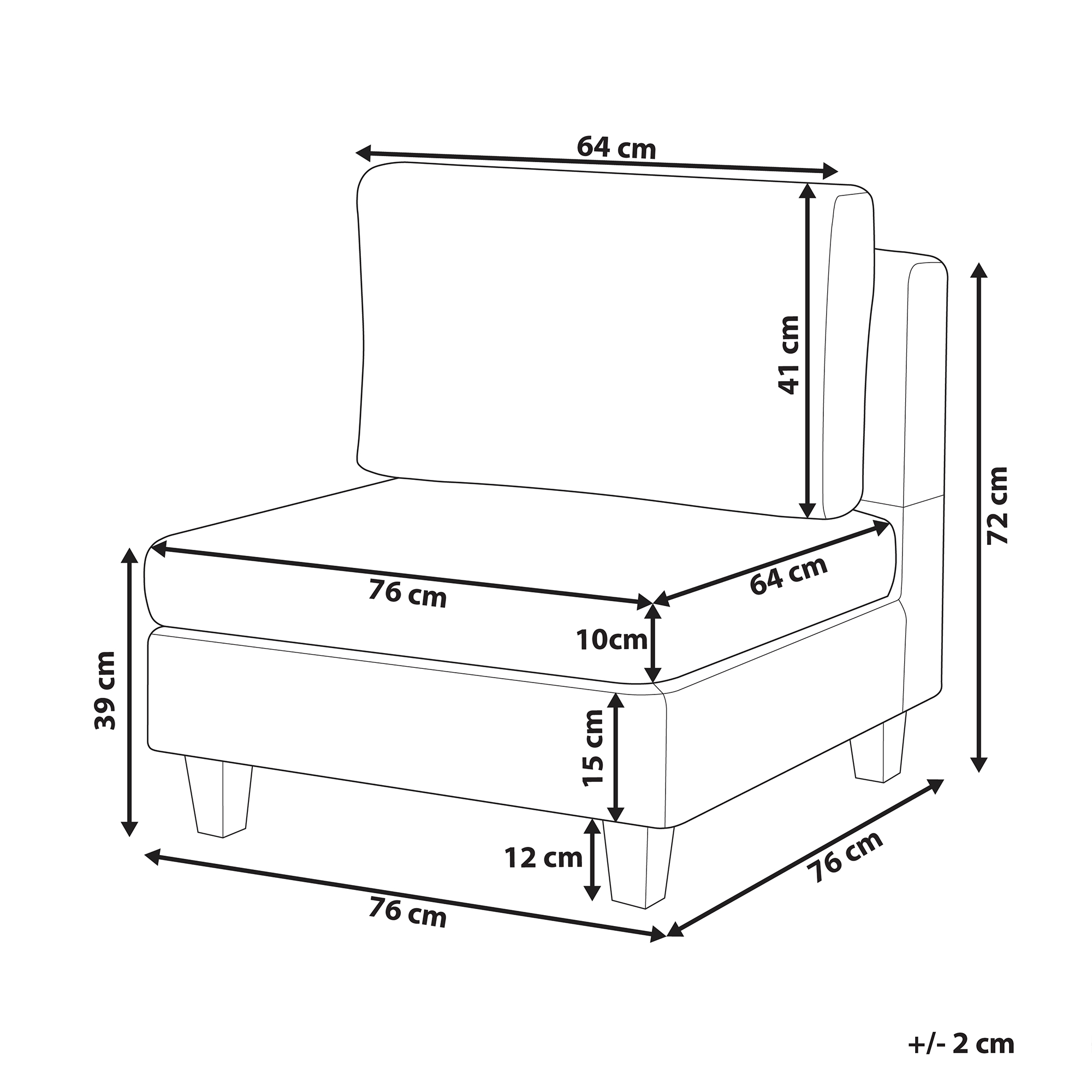 Skandinaavinen moduulisohvan keskiosa. Tämä keskimoduuli on upea, monikäyttöinen lisä jokaiseen olohuoneeseen. Sitä voidaan käyttää yhdessä muiden malliston moduuliosien kanssa täydellisen, tilaan sopivan sohvan luomiseksi tai käyttää erillään ylimääräisenä istumapaikkana. Miellyttävän tuntuisella polyesterikankaalla verhoiltu keskiosa on erittäin kestävä. Paksusti pehmustettu istuinosa sekä selkänoja tarjoavat erinomaisen istumamukavuuden. Koko rakenne on myös vakaa leveiden mustien jalkojen ansiosta.