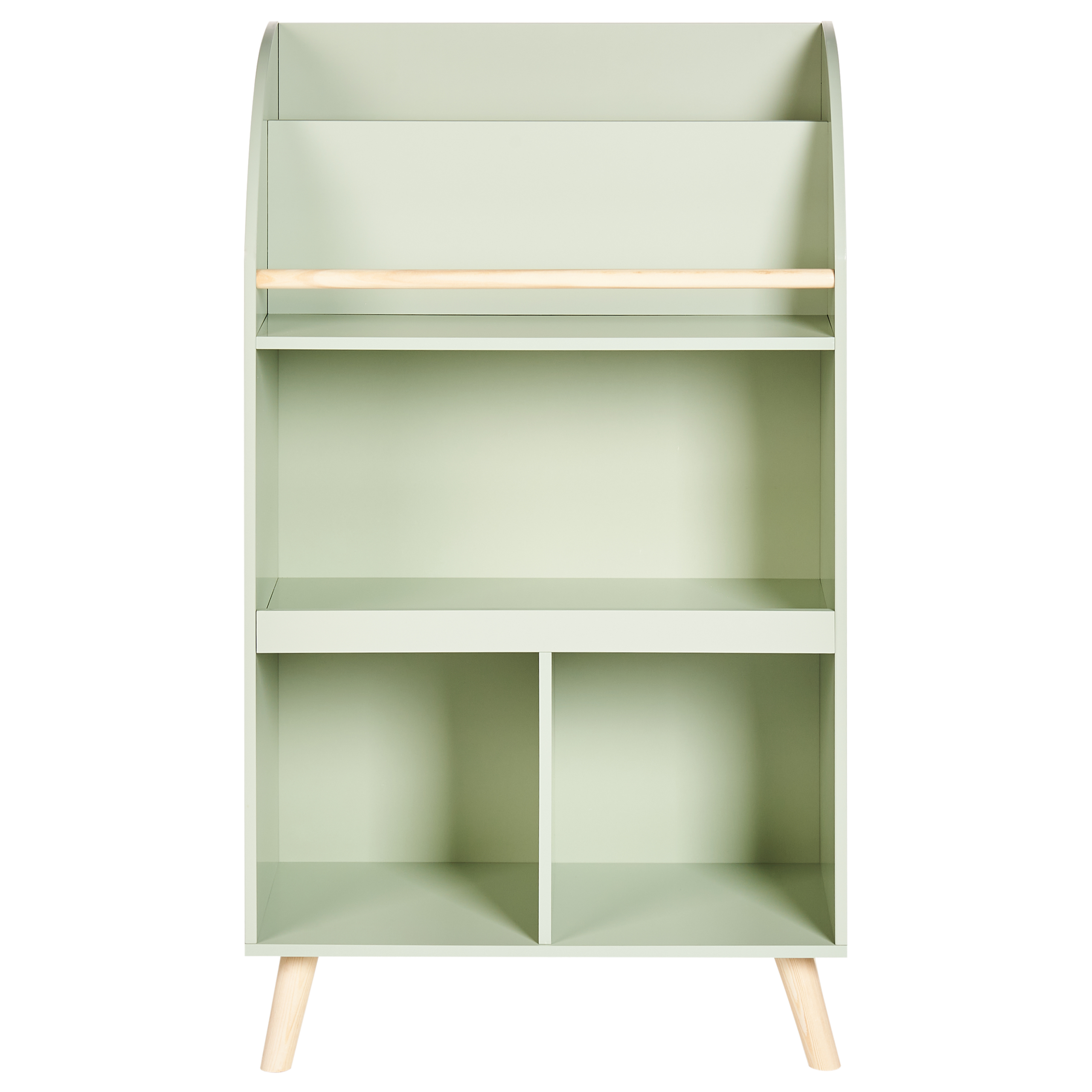 Kirjahylly lastenhuoneeseen. Lisää ripaus viehätystä lastenhuoneeseen tällä ihastuttavalla kolmitasoisella kirjahyllyllä, joka on sekä toimiva että tyylikäs. Kestävästä ja helposti puhdistettavasta MDF-levystä valmistetussa hyllyssä on vankat, vaaleat mäntyjalat vakauden takaamiseksi. Se tarjoaa runsaasti käytännöllistä säilytystilaa kirjojen, lelujen ja koristeiden esittelyyn. Yksinkertainen muotoilu ja suloinen vaaleanvihreä väri tekevät siitä täydellisen valinnan mihin tahansa sisustukseen.