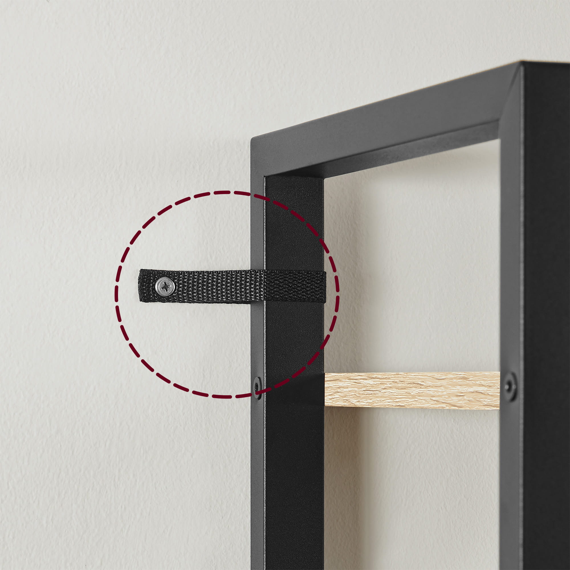 Tukeva, sonoma-sävyinen hylly sopii kirjoille, viherkasveille, maljakoille, kehyksille ja muille suosikkiesineille. Monikäyttöinen ja kompakti kaluste toimii olohuoneessa, makuuhuoneessa, eteisessä tai kotitoimistossa. Teräsrunko lisää kestävyyttä ja pitää hyllyn vakaana arjen käytössä.