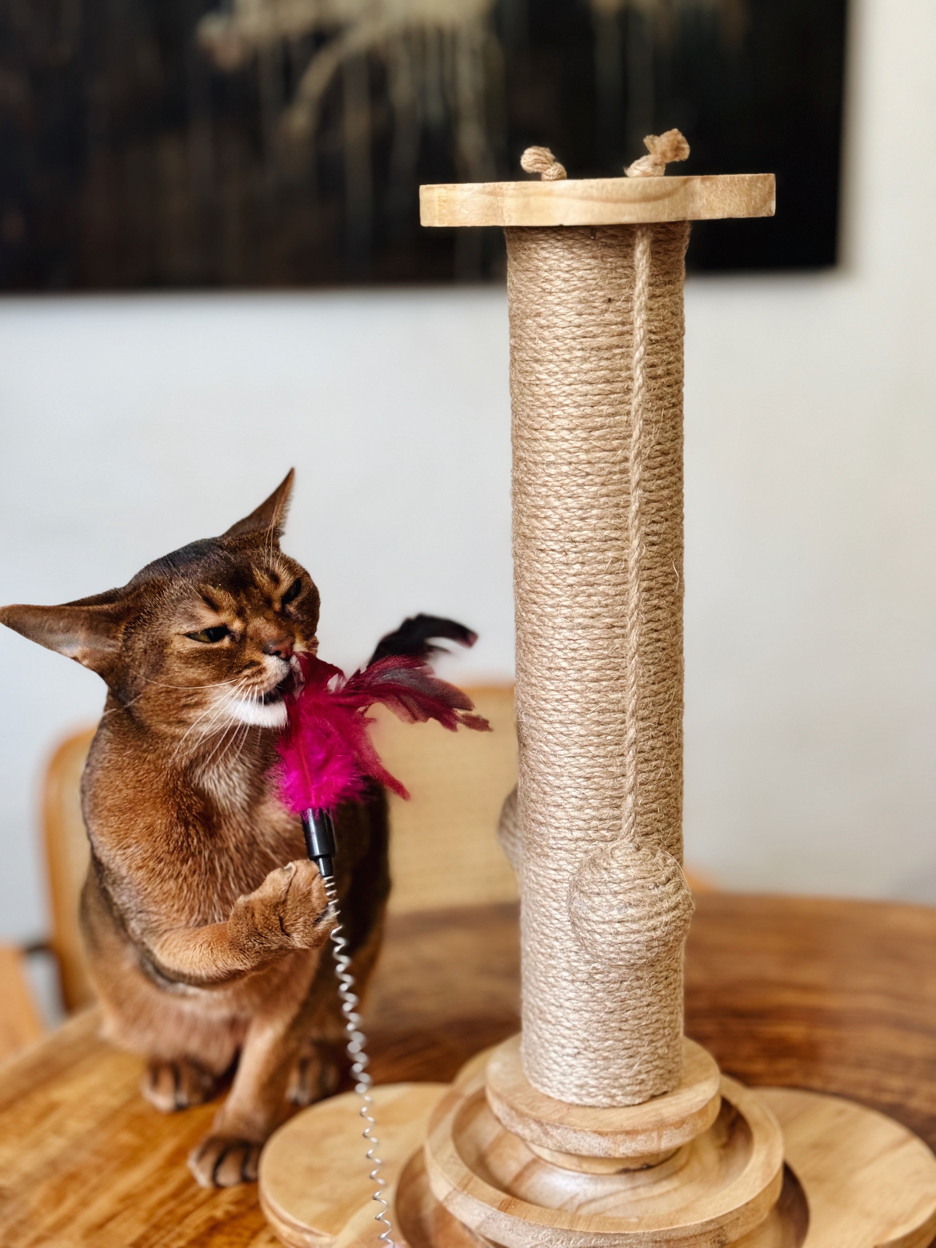 Raapimapu auttaa pitämään kissan kynnet hyvässä kunnossa ja suojaa huonekaluja vaurioilta. Se on valmistettu huolella ja viimeistelty tyylikkäästi, joten se toimii myös sisustuselementtinä kodissasi.