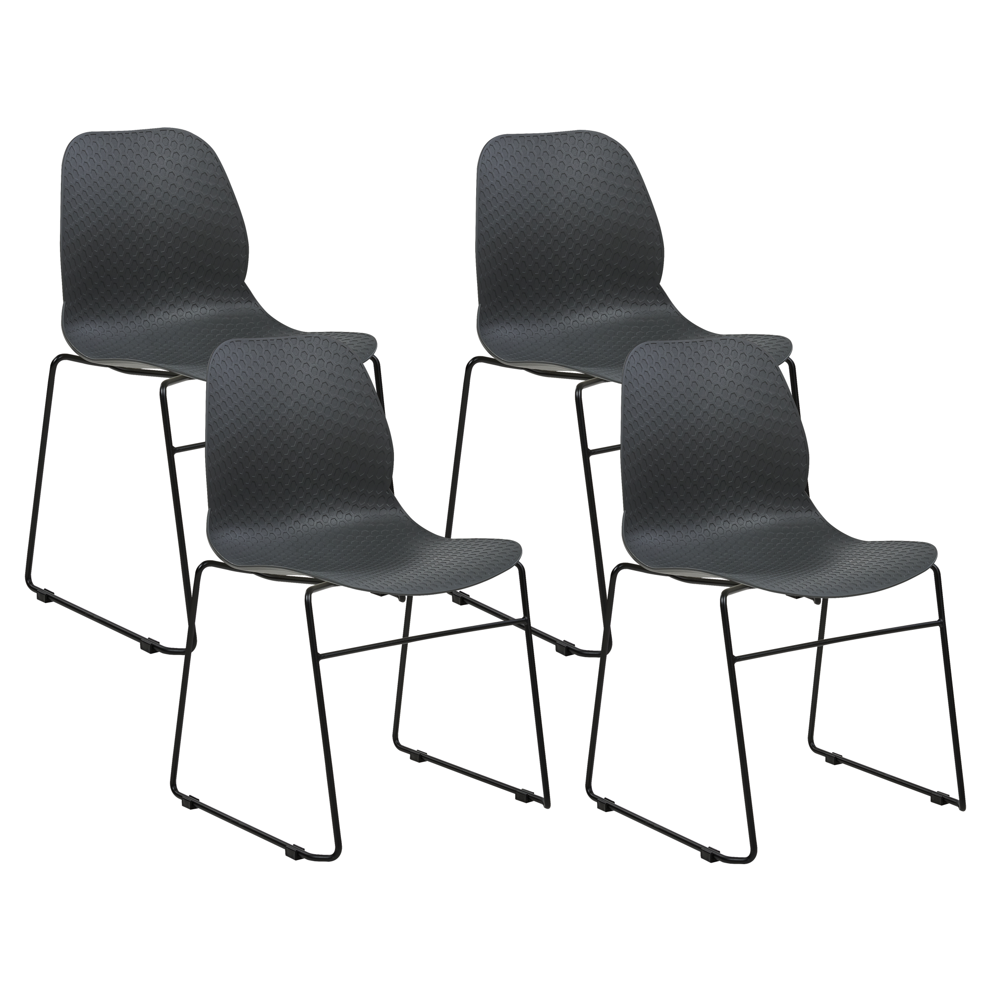 Moderni neljän kokoustuolin setti. Lisää kokoushuoneeseen modernia eleganssia tällä neljän tuolin setillä. Tuoleissa on tyylikkäät teräsjalat ja mukavat synteettiset istuimet. Muoviset jalkatassut suojaavat lattiaa naarmuilta, ja käsinojaton muotoilu mahdollistaa tuolien pinottavuuden tai pöydän alle työntämisen, kun niitä ei käytetä. Ne sopivat täydellisesti myös pienempiin tiloihin ja minimalistiseen sisustukseen. Tuolit ovat kestävät ja helppoja puhdistaa, mikä tekee niistä ihanteellisia jokapäiväiseen käyttöön, myös ruokailutilassa.