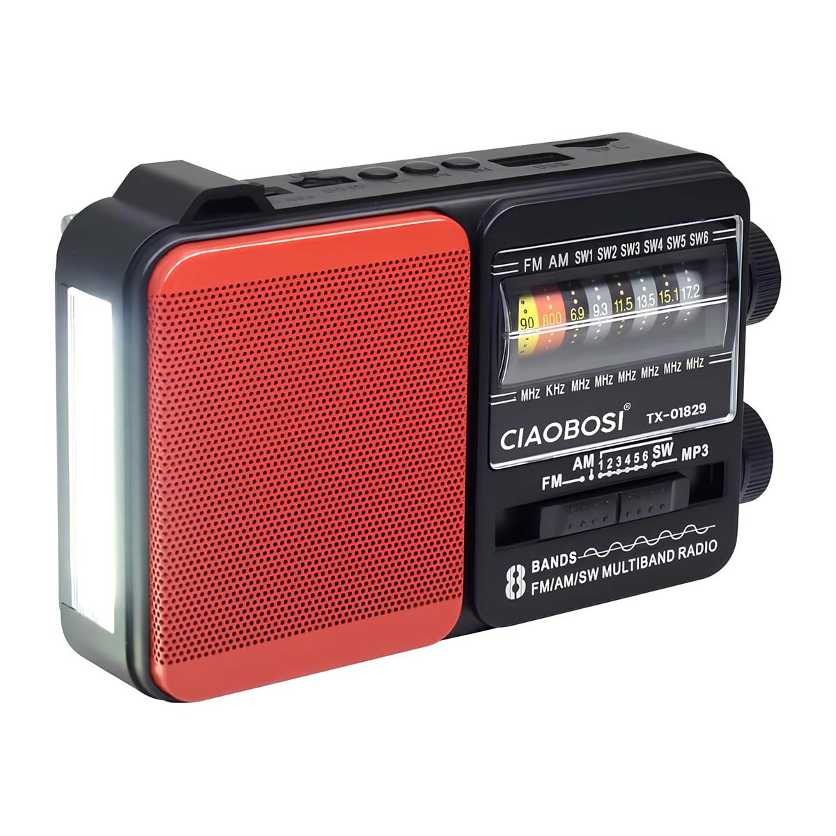 Kolmikaistainen FM/AM/SW-radio USB-MP3-liitännällä ja LED-valolla