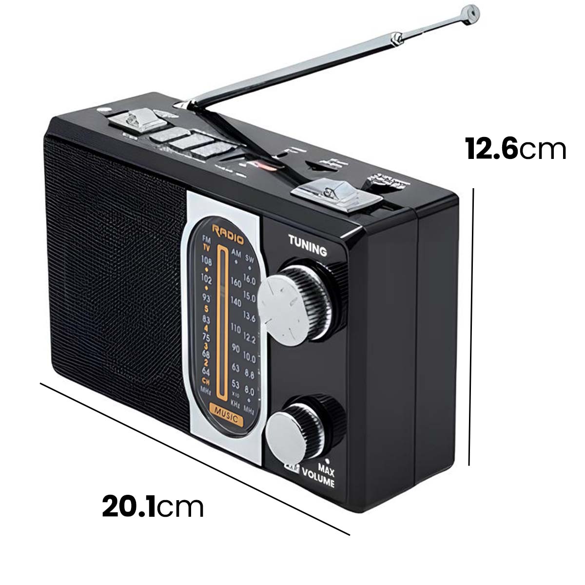 Kolmikaistainen FM/MW/SW-kannettava radio teleskooppisella antennilla