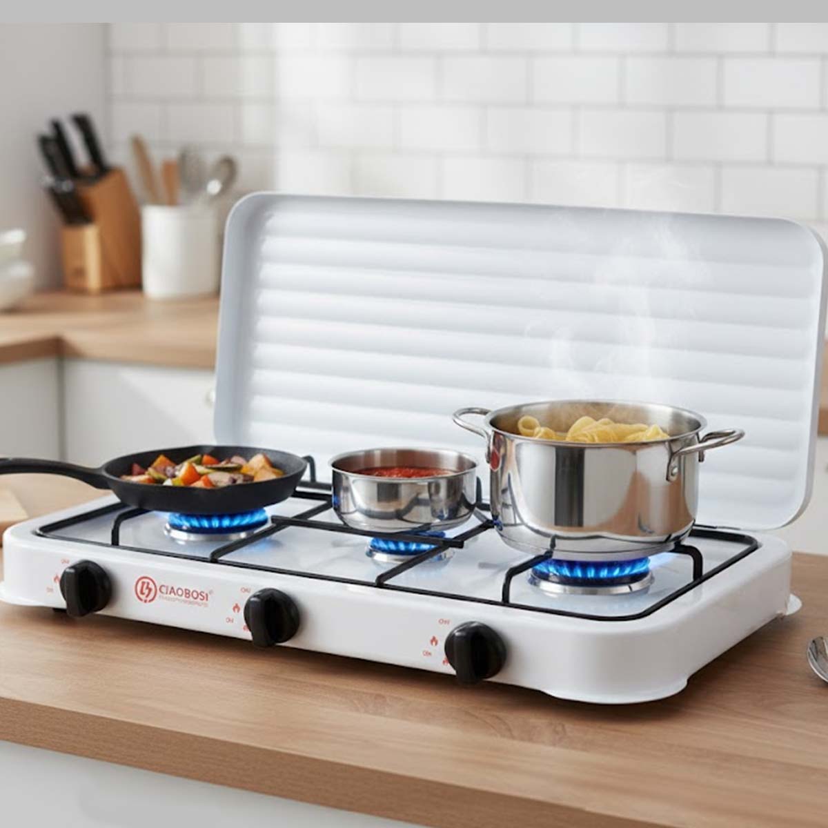 3-polttimoinen kaasuliesi, joka on suunniteltu jokapäiväiseen ruoanlaittoon: keitä, paahda tai hauduta kahta ruokalajia kerralla. Manuaalinen sytytys ja kunkin polttimen itsenäinen säätö liekin tarkkaa annostelua varten. Optimoitu ilmanotto tehokasta palamista ja tasaisempaa lämmitystä varten. Ihanteellinen kodin ruoanlaittoon tai varalaitteeksi.