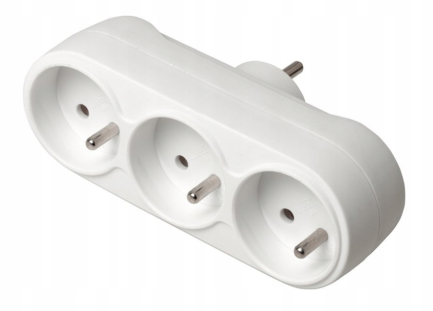 Kolminkertainen pistorasiapyöreillä pin-tyyppisillä pistorasioilla. Hyödyllinen aina, kun tarvitset lisää pistorasiaa.