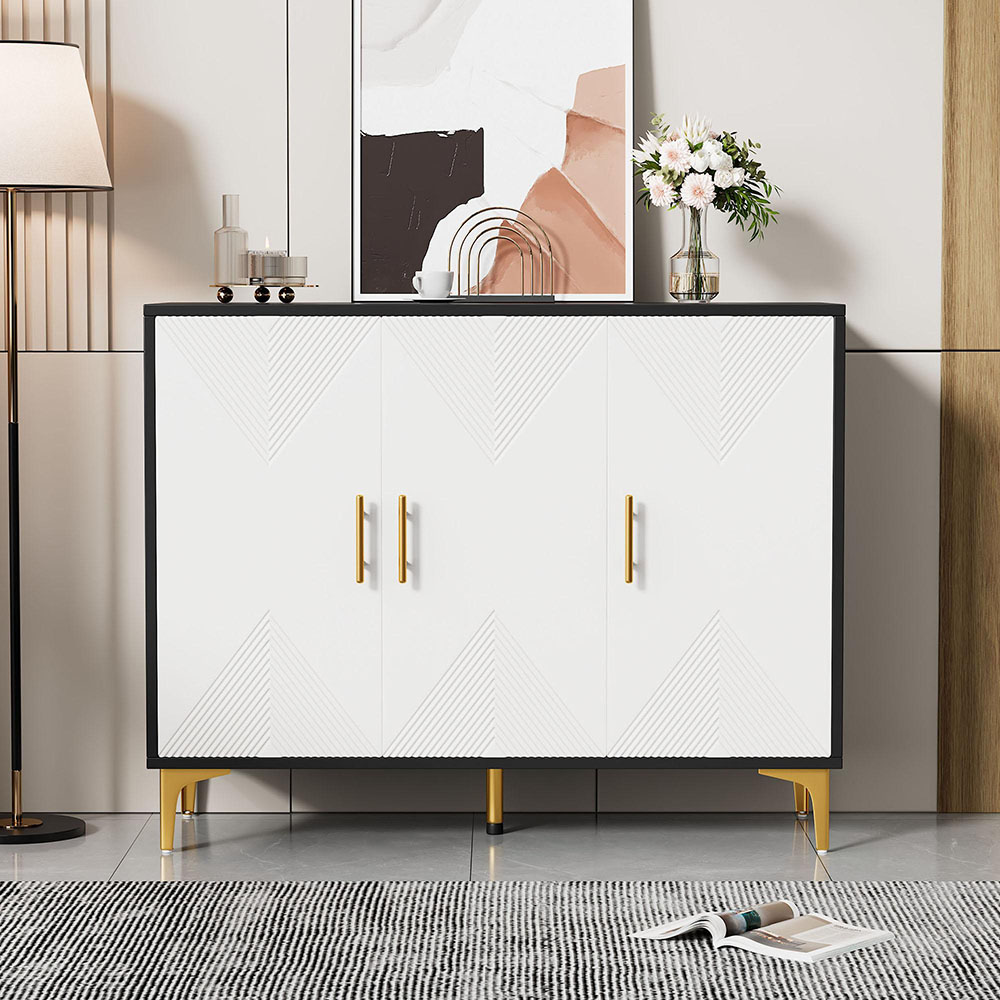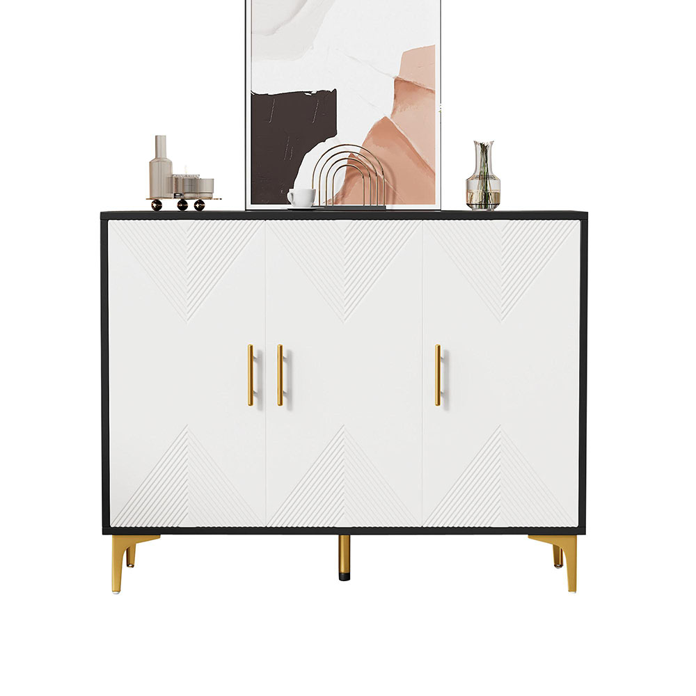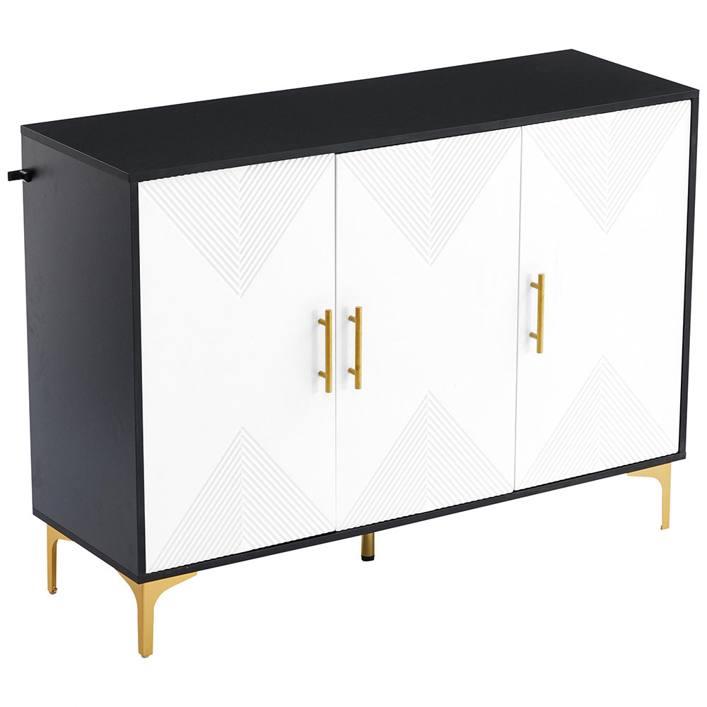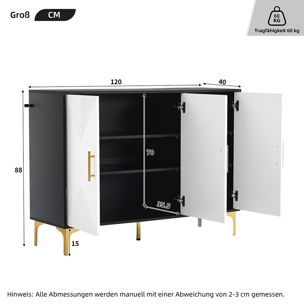 KOMHTOM-sivukaappi tuo kotiisi modernia tyyliä, jossa käytännöllisyys ja yksityiskohdat ovat tarkkaan harkittuja. Metalliset jalat ja kullanväriset vetimet viimeistelevät ilmeen ja tuovat kaappiin näyttävyyttä kuitenkaan korostumatta liikaa. Valkoiset ovet ja musta runko sopivat monenlaisiin sisustuksiin, olipa kyseessä makuuhuone, olohuone, keittiö tai työtila.