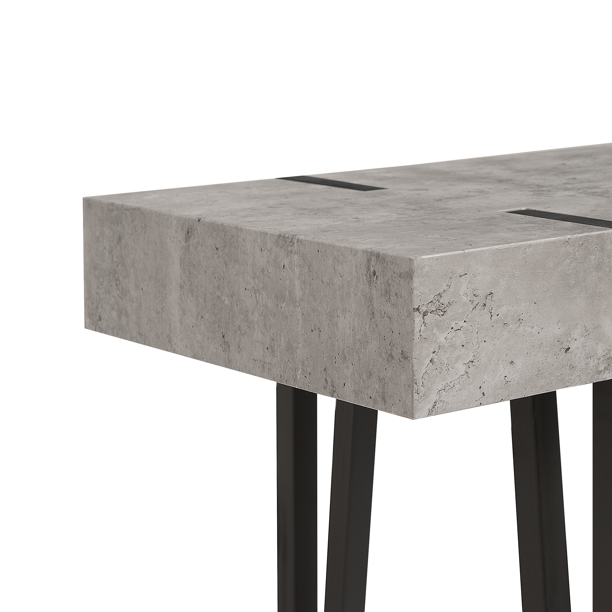 Ominaisuudet: Sopii hyvin industriaalisiin sisustuksiin, Sopii sekä makuu- että olohuoneeseen, Betonimainen viimeistely industriaalisen ilmeen luomiseksi, Korkealaatuiset materiaalit, Parhaan hoidon varmistamiseksi: suojaa lämpöä ja kosteutta vastaan lasinalusilla ja pöytätableteilla, Helppo ja mutkaton kokoonpano