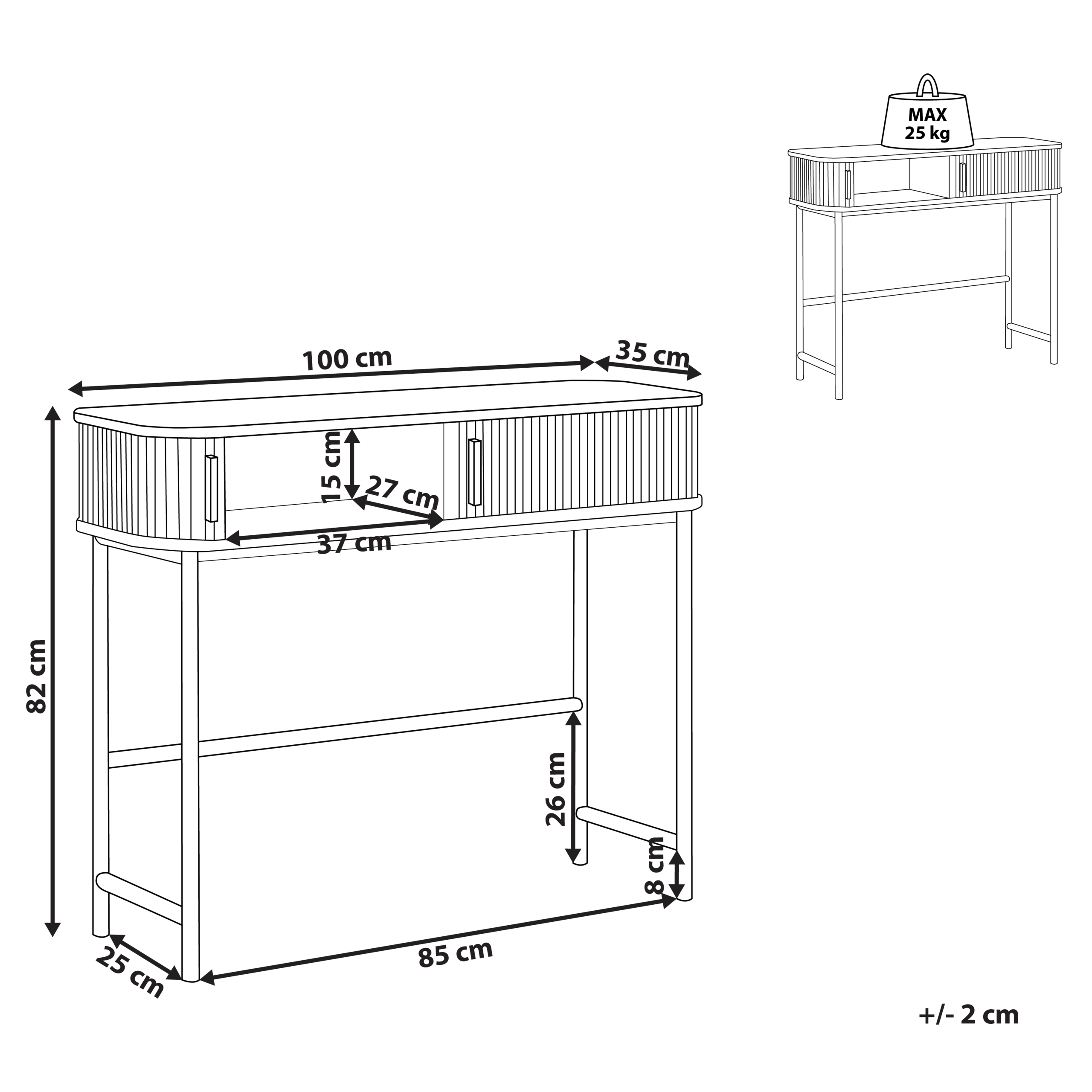 Moderni konsolipöytä liukuovilla. Pidä kodin tilat järjestyksessä tällä tyylikkäällä konsolipöydällä. Käytännöllisten liukuovien taakse kätkeytyvä säilytystila tarjoaa paikan useille tarpeellisille esineille, kuten pienille koreille tai kirjoille. Tumman puun väristä runkoa korostavat mustat teräsjalat, jotka takaavat vakauden. Kestävien materiaaliensa ansiosta konsolipöytä ei vaadi päivittäistä ylläpitoa. Se sopii erinomaisesti retro- ja vintage-vaikutteisiin sisustuksiin.