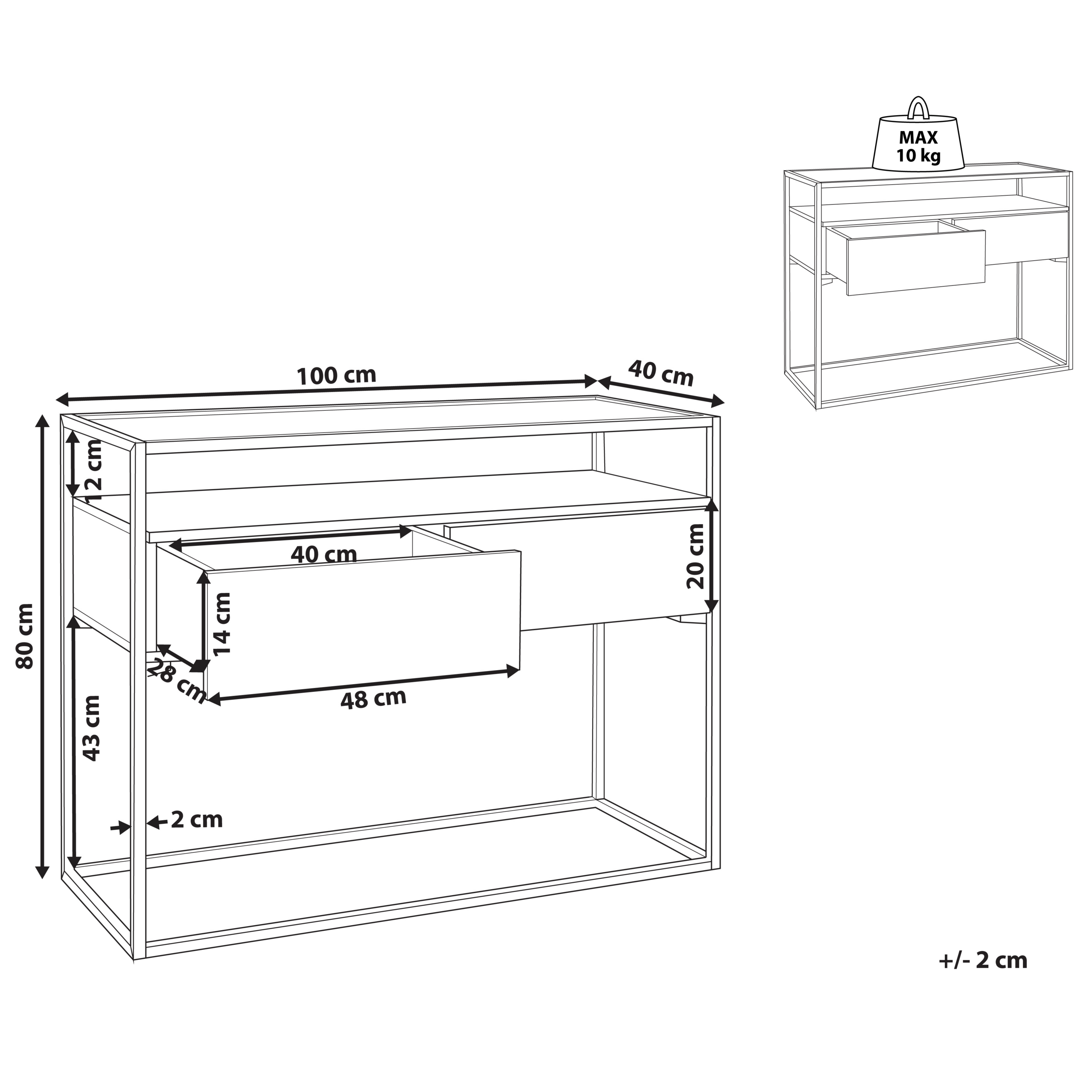 Ominaisuudet: Käytännöllinen säilytystila pöytätason alla, Käytännölliset laatikot tukevalla mekanismilla, Sopii hyvin industriaalisiin sisustuksiin, Puumainen viimeistely luonnollisen ilmeen luomiseksi, Vankka ja kestävä rakenne