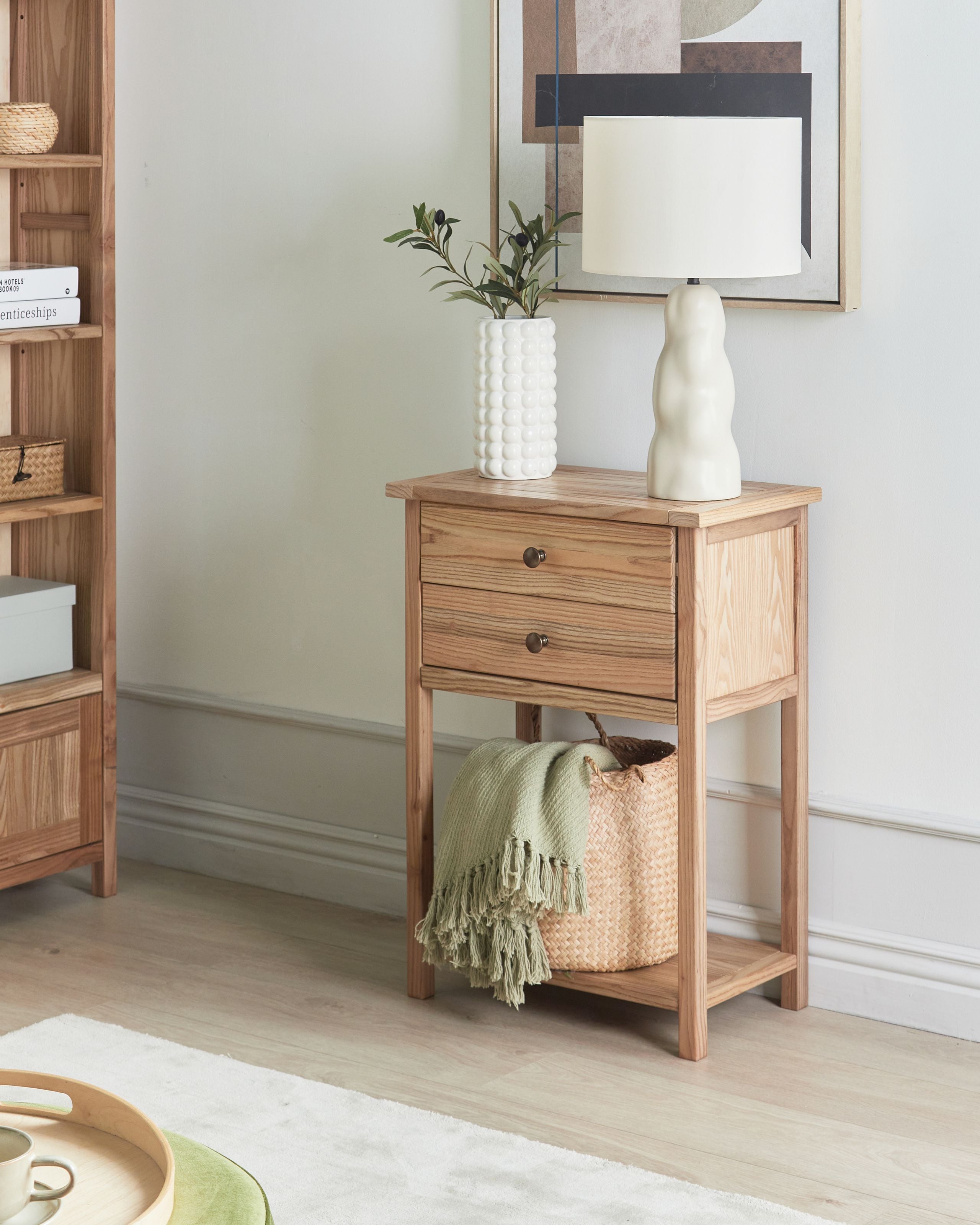Ominaisuudet: Avonainen hylly helpottaa pääsyä, Käytännölliset ja tilavat laatikot, Ajaton muotoilu, Sopii useaan eri sisustustyyliin, Puun luonnolliset syykuviot tekevät jokaisesta kappaleesta ainutlaatuisen, Korkealaatuiset materiaalit